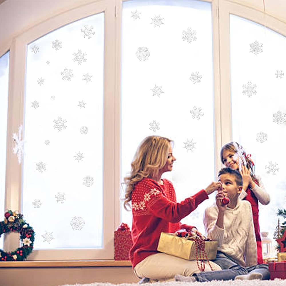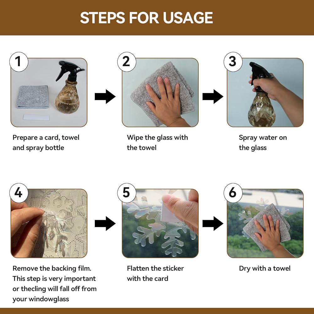 ❄️ سهلة الاستخدام - ملصقات النوافذ مصنوعة من مادة لاصقة ثابتة مما يعني عدم وجود مادة لاصقة، فقط رش دقيق من الماء للاستخدام مما يعني عدم وجود ضرر دائم لنوافذك ويمكن إزالة ملصقات النوافذ هذه بسهولة لضبط موضعها.
