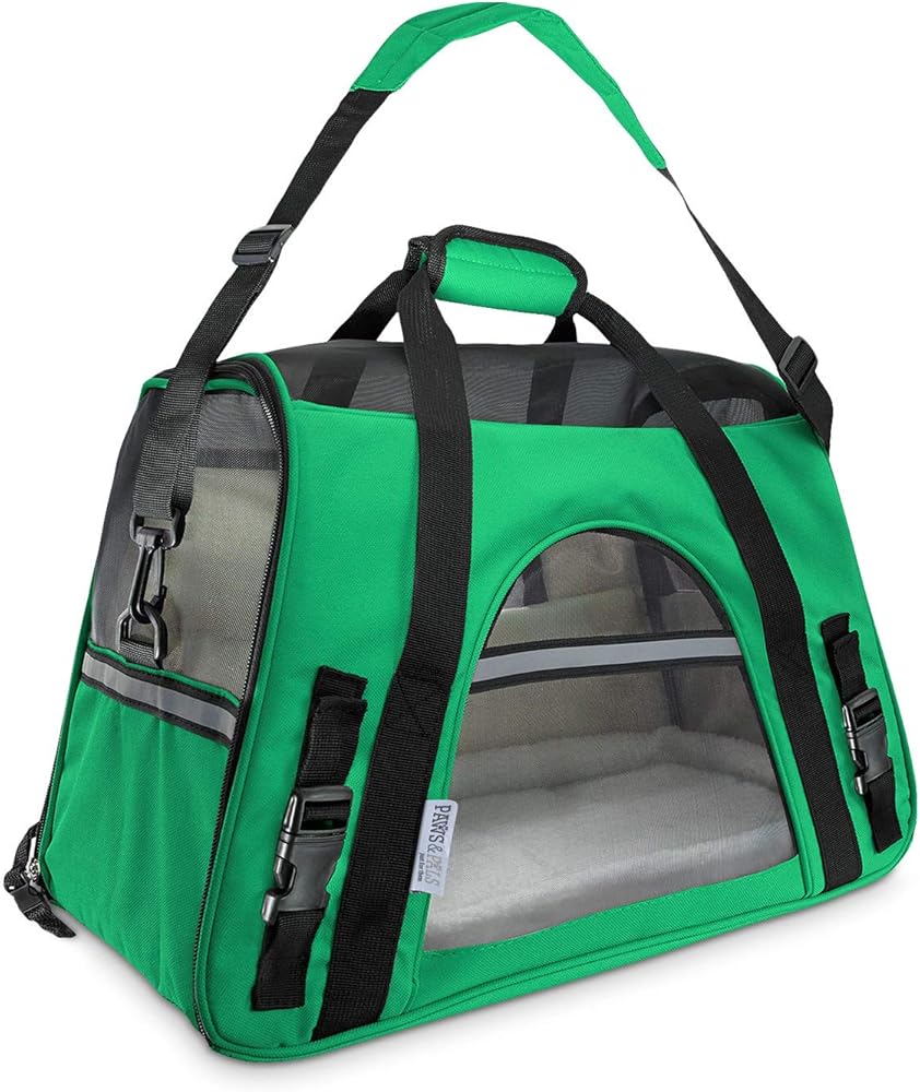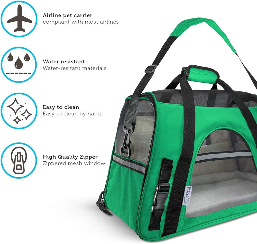 باوز اند بالز حامل حيوانات اليفة معتمد من شركات الطيران - حوامل ناعمة الجوانب للقطط والكلاب الصغيرة والمتوسطة للسفر على متن الطائرة مع سرير مسند من الصوف للقطط الصغيرة والجراء والكلاب التاكسي