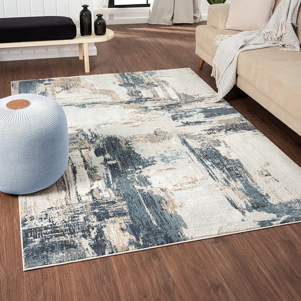 • ART AND FUNCTIONALITY: A carpet for living rooms gives your home an upscale feel while keeping your feet cozy. It's easy to redecorate – our abstract area rugs with a distressed style will give plain carpets and hardwood floors a makeover.