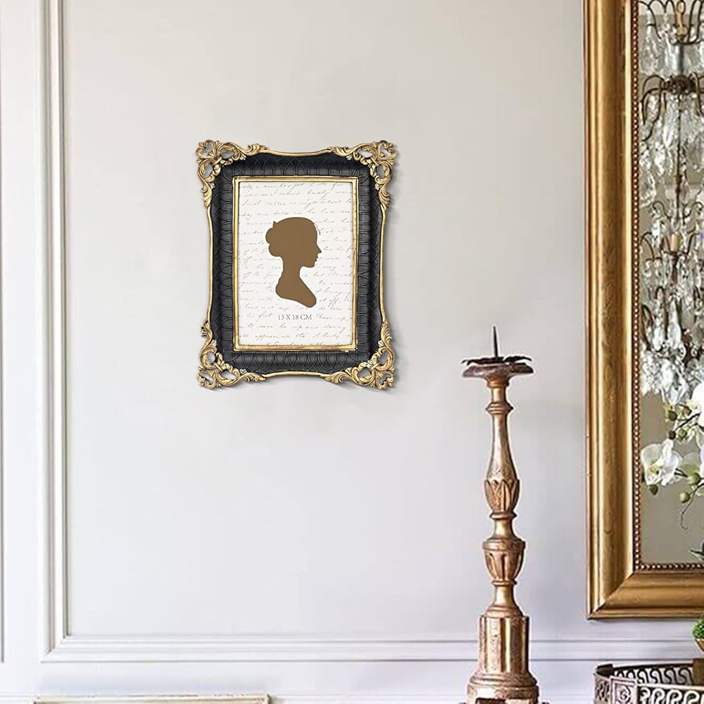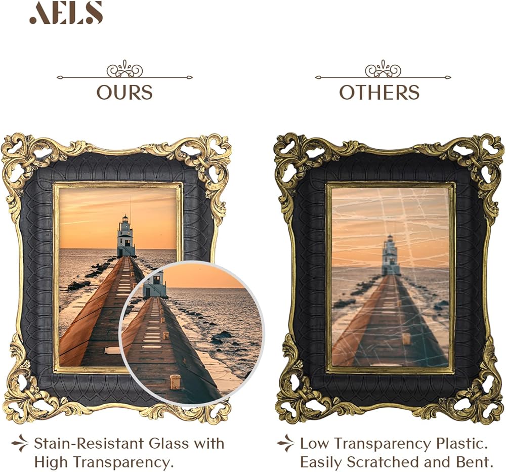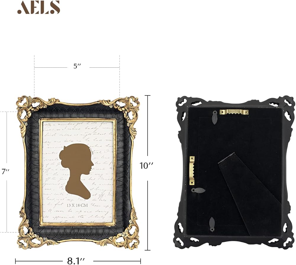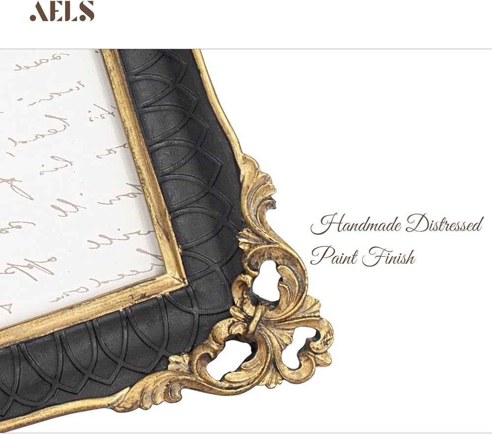 إطار صورة أسود عتيق مقاس 5x7 بوصة من AELS، إطارات صور عتيقة أنيقة مع واجهة زجاجية، عرض للصور، تعليق على الحائط على سطح الطاولة، ديكور منزلي، زاوية مجوفة باروكية