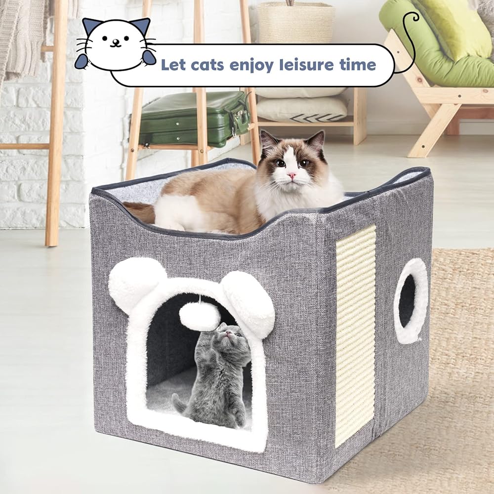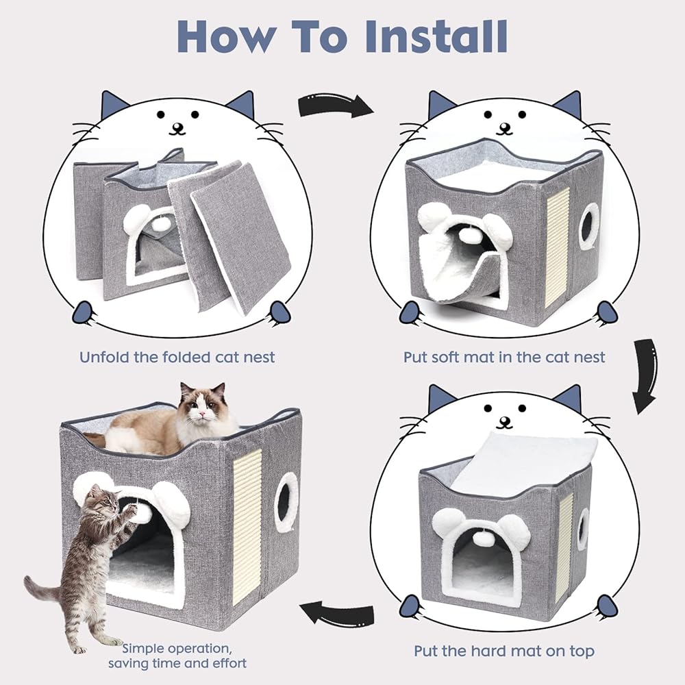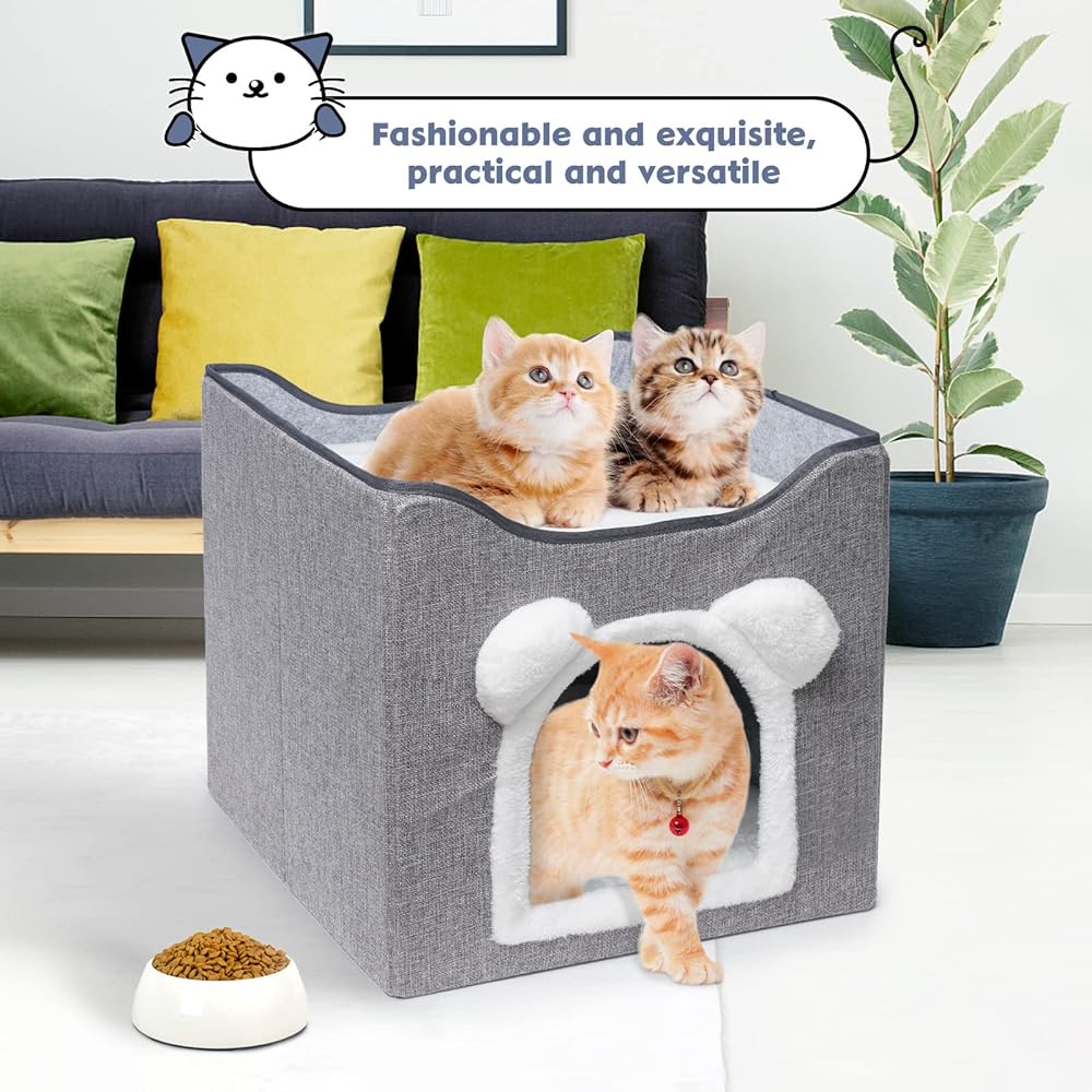 التجميع بسهولة: يمكن تجميع مكعب القطط هذا للقطط الداخلية بسرعة أو طيه بشكل مسطح لسهولة التخزين والسفر. محمولة وخفيفة الوزن. تتميز الوسائد القابلة للإزالة بأغطية قابلة للعكس وقابلة للغسل في الغسالة وتوفر الراحة طوال الموسم.