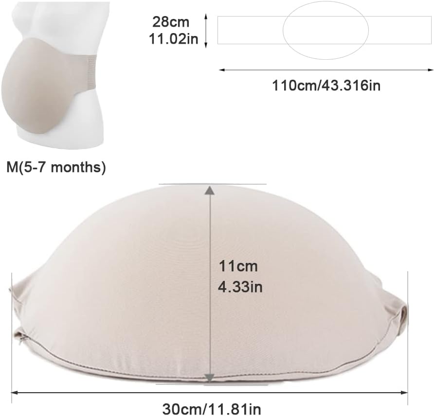 【REALISTIC DESIGN】Three sizes are available, S(2-4 months), M(5-7 months), L(8-10 months), simulating the size of the real pregnancy month, highly fitt, and the flesh tint design makes your fake belly more realistic.