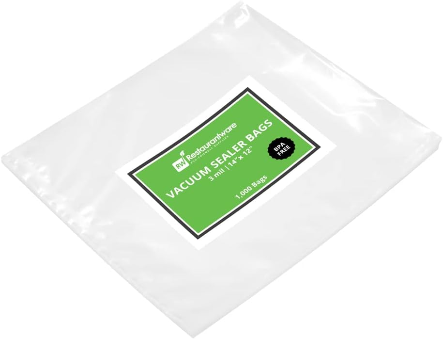 أكياس سدادات الفراغ الفريدة من نوعها من Restaurantionware 14 × 12 بوصة ، 1000 أكياس تخزين الطعام - 3 مل مللي ميكروويف قابلة للتفصيل أكياس قابلة للتجميد لتخزين الطعام أو الطهي في الفيديو