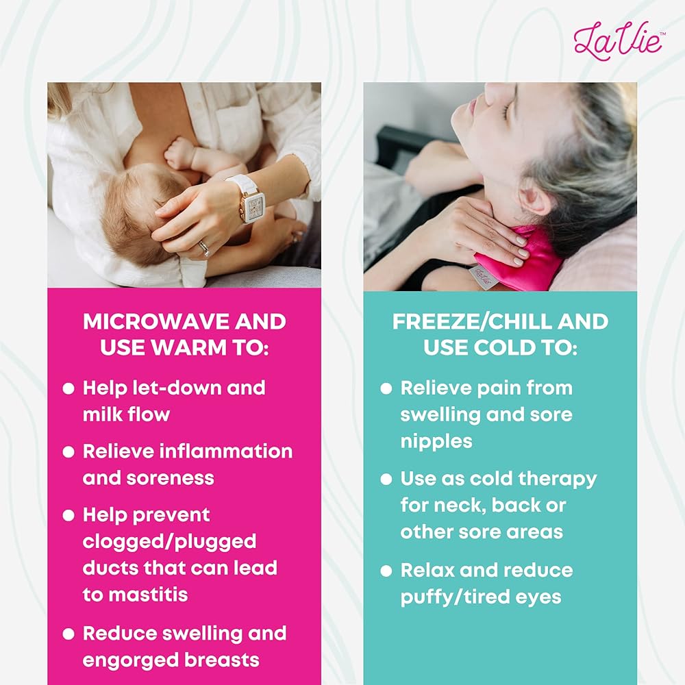 • تحسن من تدفق اللبن وتخفف الألم: توفر الراحة الدافئة من لافي لتحسين تدفق لبن الأم، مما يوفر الوقت في الضخ أو الرضاعة. ضعي عبوات مريحة باردة لتخفيف آلام الخطوبة والقنوات المسدودة والتهاب الخفوف.