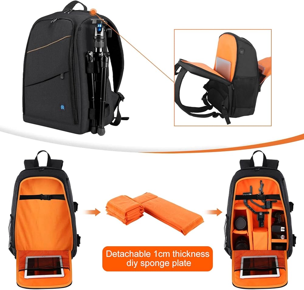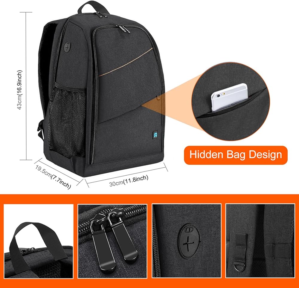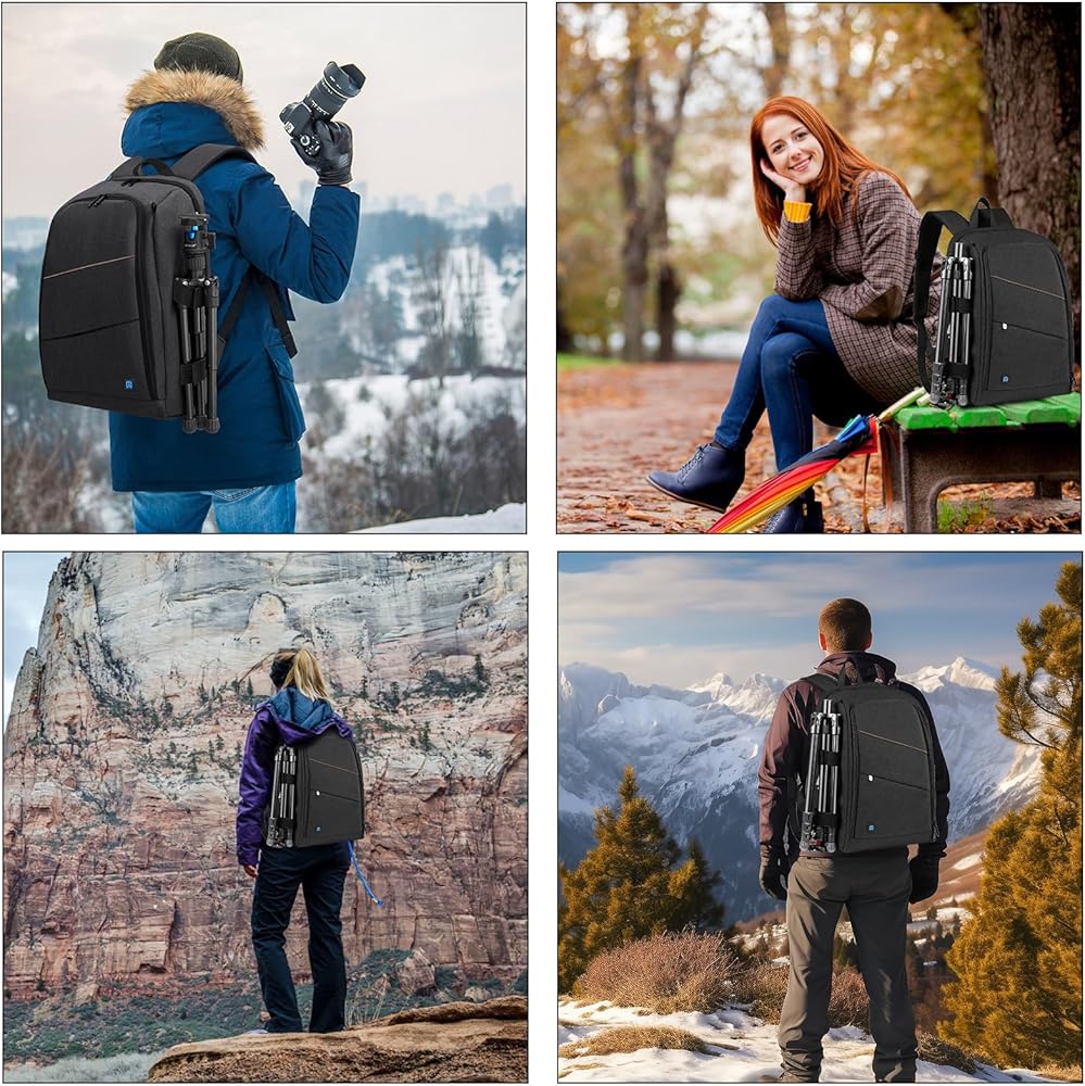 📸【حقيبة ظهر للتخزين الاحترافي】 - يمكن لحقيبة الظهر للتصوير الفوتوغرافي أن تحمل جسم كاميرا DSLR، بالإضافة إلى العدسات وعدسة أو اثنتين إضافيتين وإكسسوارات. كما يأتي مزودًا بغطاء مطر مقاوم للماء للمساعدة في حماية عدساتك وحوامل الإضاءة والكاميرا وأساسيات التصوير الفوتوغرافي.