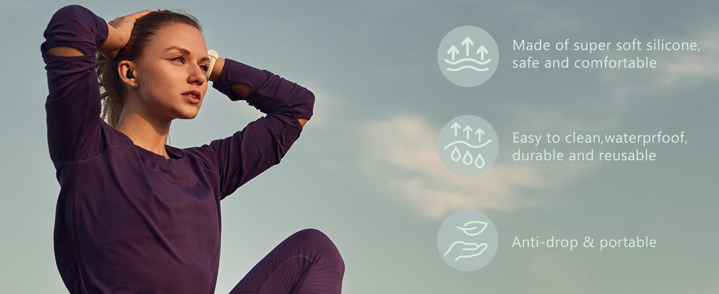 【سيليكون صديق للبشرة بنسبة 100%】- مصنوع من مواد ناعمة ومريحة وقابلة لإعادة التدوير. لا رائحة كيميائية. لا داعي للقلق بشأن إيذاء الأذنين حيث لن يكون هناك ألم أو حكة أثناء ارتدائها.