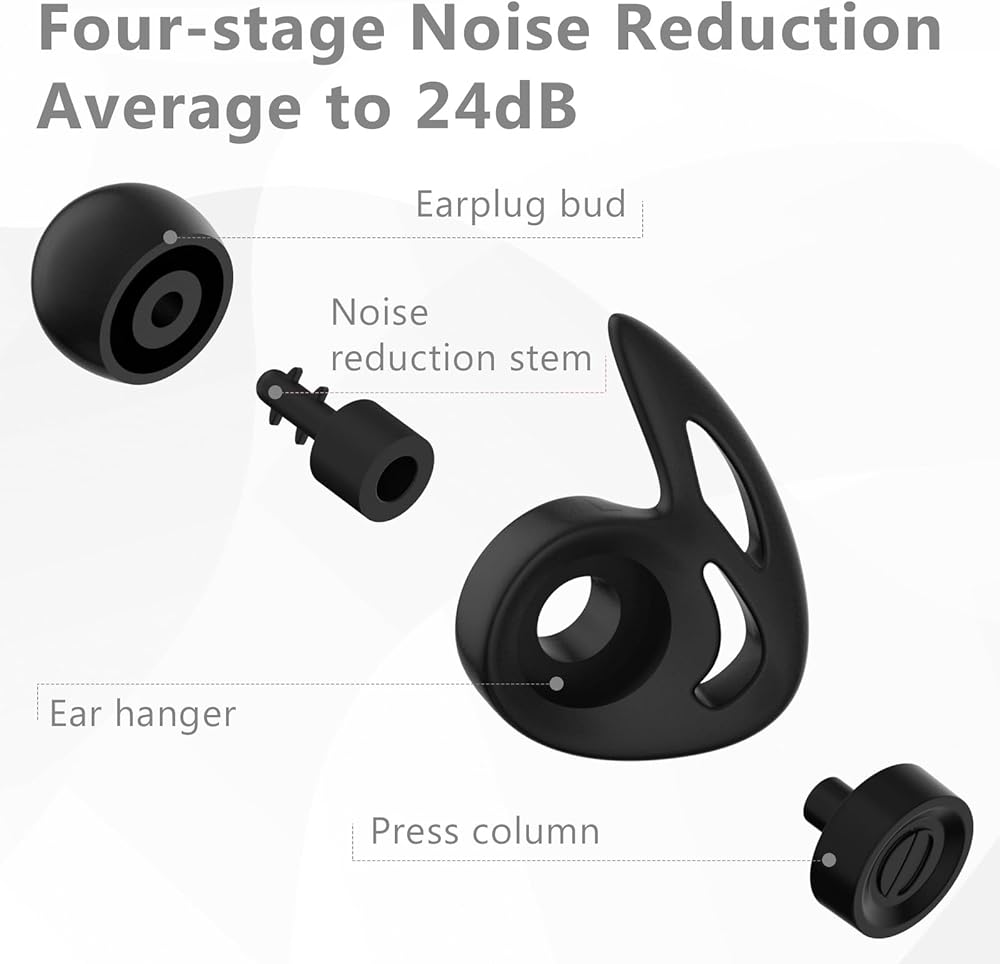 【تقليل الضوضاء على أربع مراحل】- حقق متوسط تقليل الضوضاء بمقدار 24 ديسيبل NRR مع أربعة مكونات دقيقة لتقليل الضوضاء. خفض الضوضاء بشكل فعال ومنع فقدان السمع.