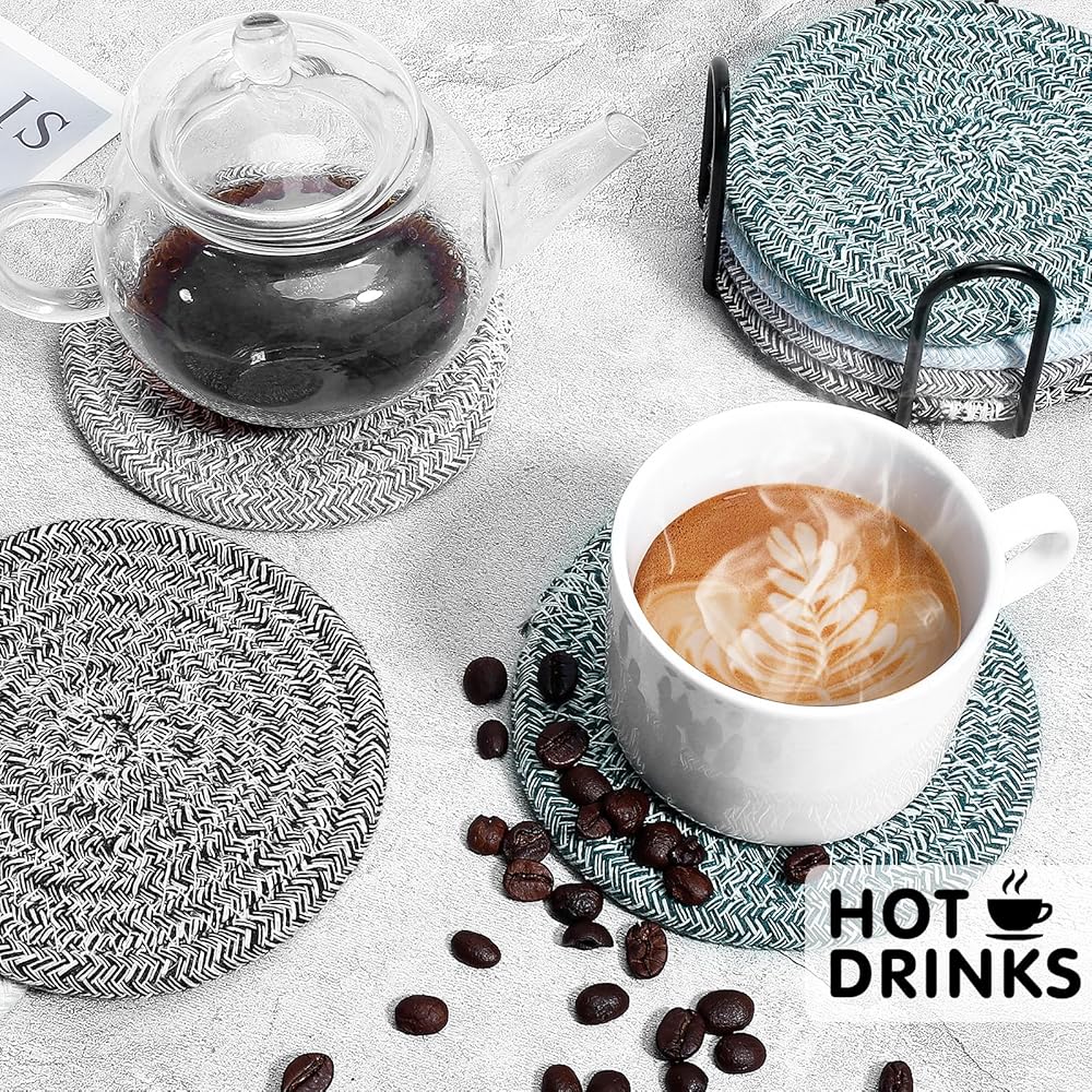 🍒 استخدام طويل الأمد ومقاومة للحرارة: قواعد الأكواب مصنوعة من نسيج القطن الخالص بنسبة 100%، وهي مرنة ومتينة. يمكن استخدامه للمشروبات الباردة أو الساخنة في أي مناسبة. استمتع بالكحول أو المشروبات الكحولية أو عصير الفاكهة أو المشروبات الأخرى المفضلة لديك، مثل البيرة أو النبيذ أو الويسكي أو الكوكتيل الاستوائي أو الماء المثلج أو المشروبات الغازية أو القهوة أو الشاي أو الشوكولاتة الساخنة.