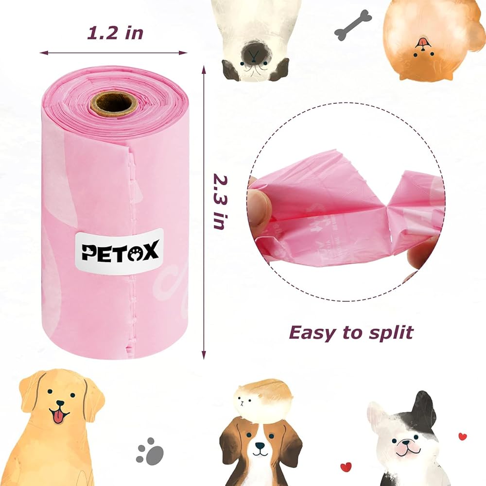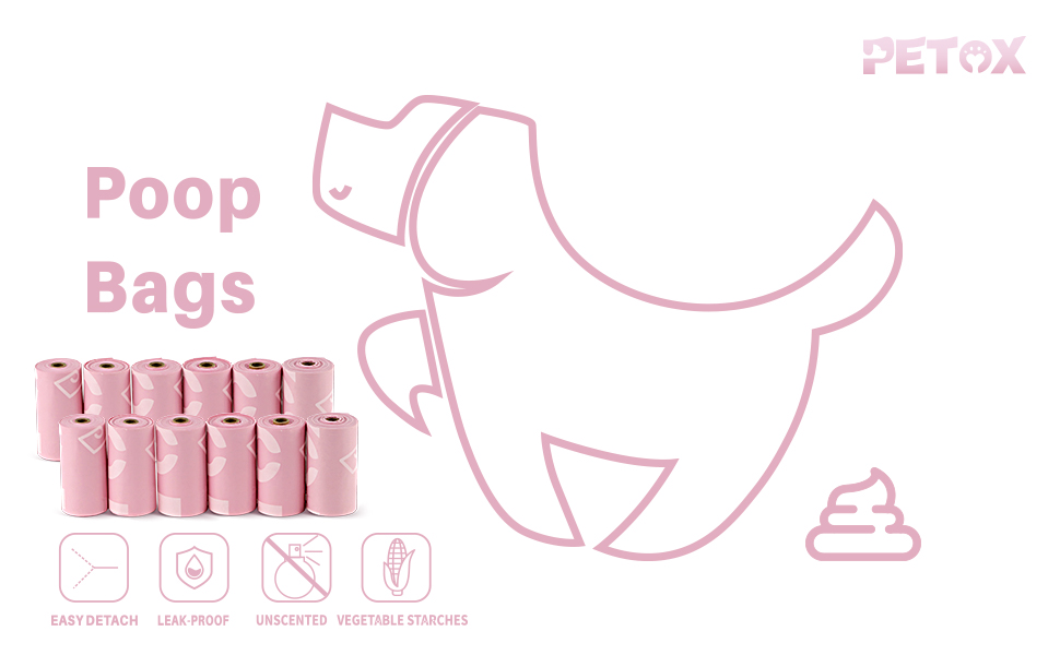 𝗟𝗲𝗮𝗸 𝗣𝗿𝗼𝗼𝗳 𝗗𝗼𝗴 𝗕𝗮𝗴𝘀: PETOX poop bags are made of extra thick material, strong and durable. The leak-proof and anti-odor design ensures that you can pick up waste without any worries