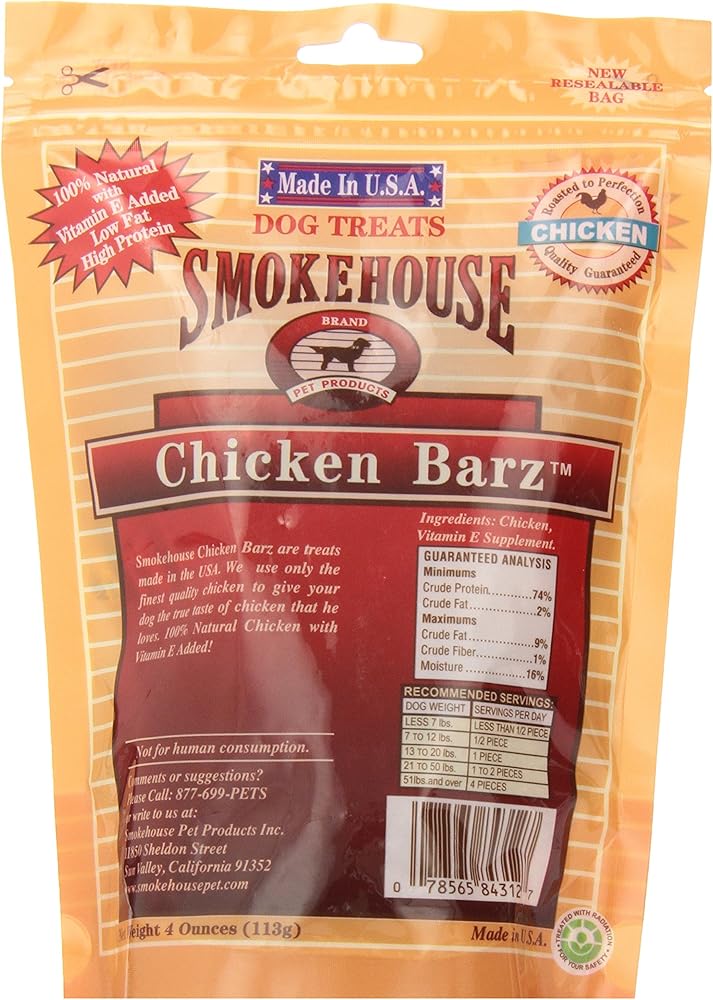 This product has a great performance, quality and price. 100 percent natural treat. . Only the finest quality chicken to give your dog the true taste of chicken that he loves. . Made from raw materials sourced from u. s. d. a. meat plants. . No additives, no preservatives, no colorings, just chicken. . Manufacturer: SMOKEHOUSE PET PRODUCTS