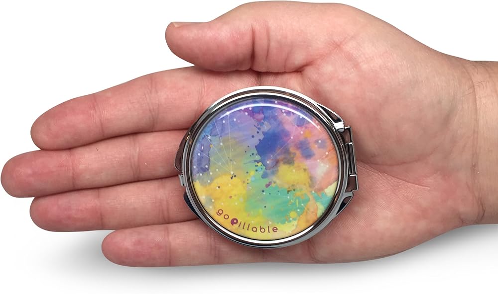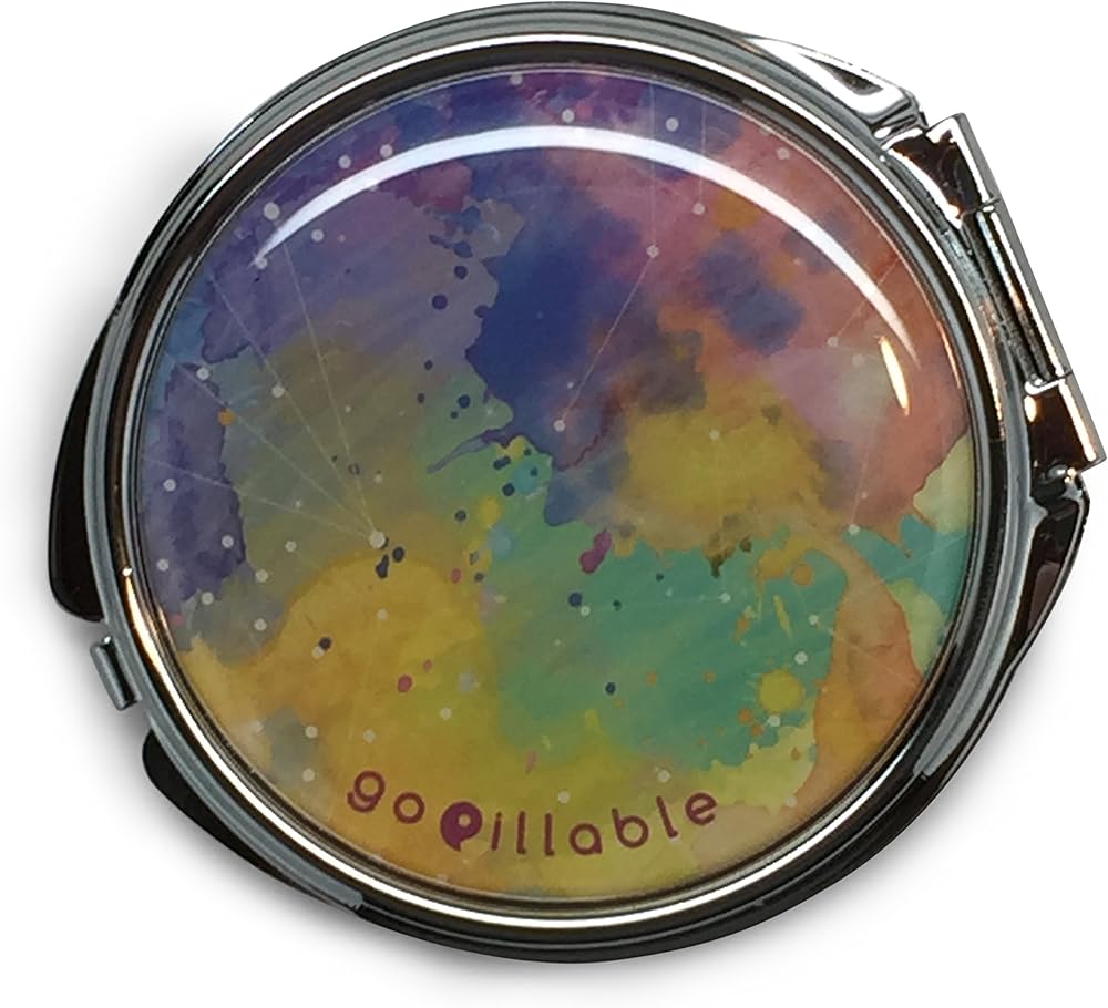 جوبيلابل حافظة حبوب دواء مزخرفة بألوان مائية سكاي أو حافظة حبوب دواء للجيب خفيفة الوزن ومريحة. قم بتنظيم أدويتك مع صندوق حبوب الدواء هذا أو علبة حبوب الدواء في المحفظة. لمسة نهائية من الكروم الفضي مع جزء علوي شديد اللمعان يتميز بـ 3 مساحات تخزين، يمكن وضع صندوق حبوب الدواء الصغير في المحفظة أو الجيب.