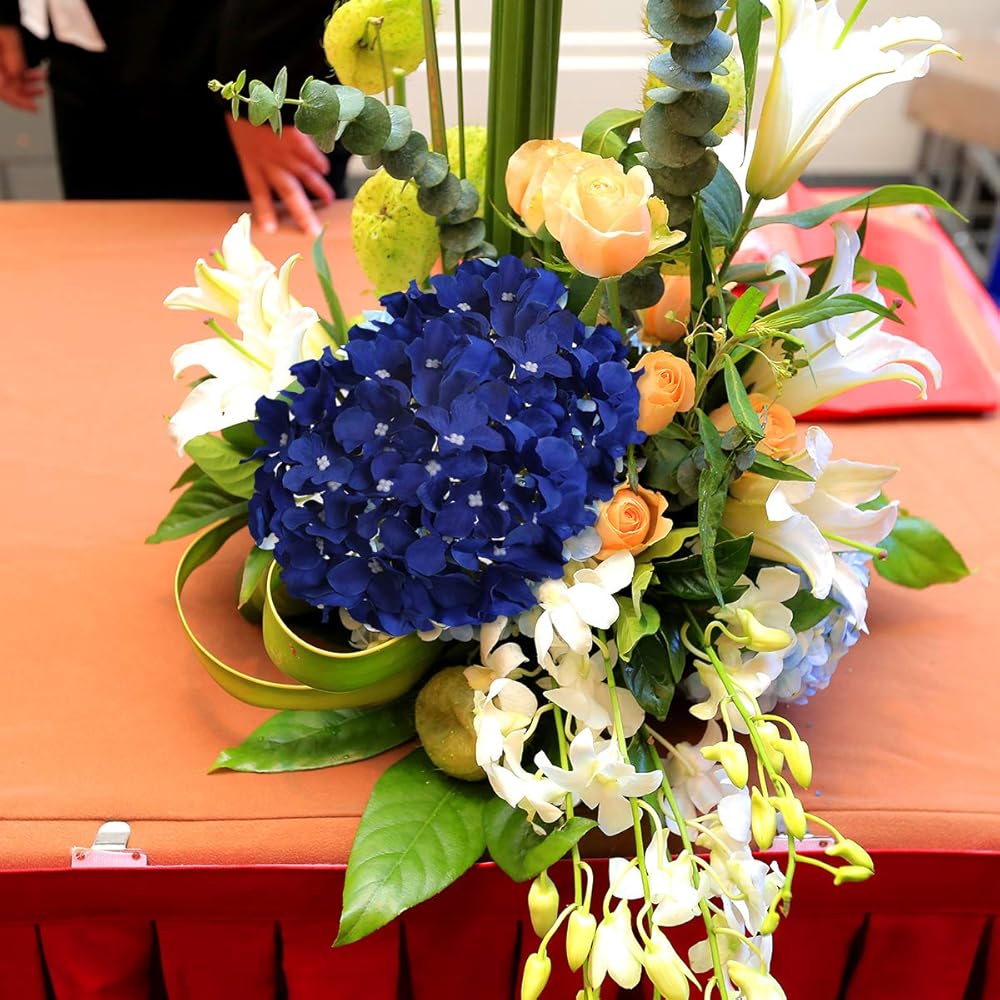 Luyue 10 عبوات من زهور الكوبية الحريرية ترتيب الزهور الاصطناعية مع زهرة جذعية حرفية لتزيين المنزل قطعة مركزية لحفلات الزفاف (أزرق ملكي)