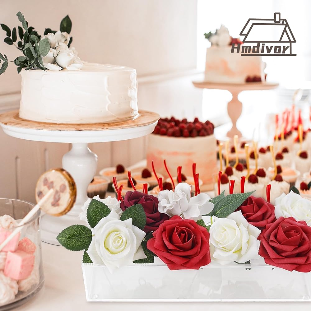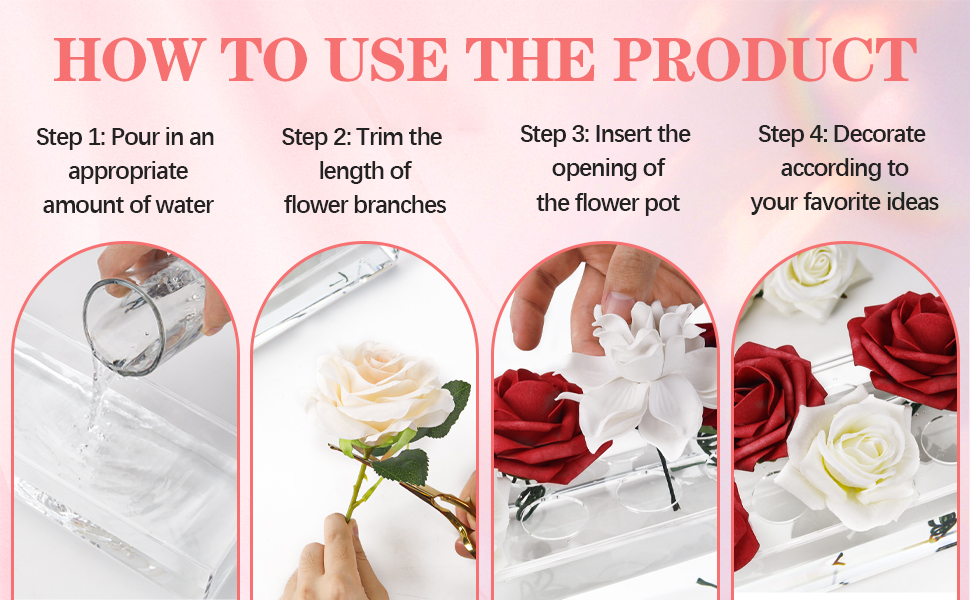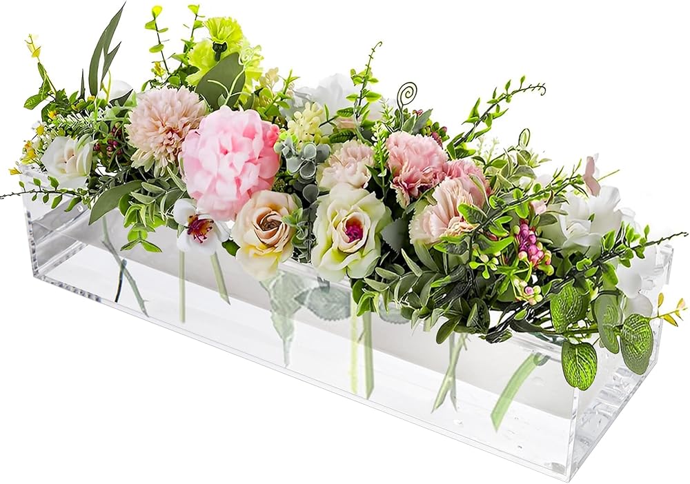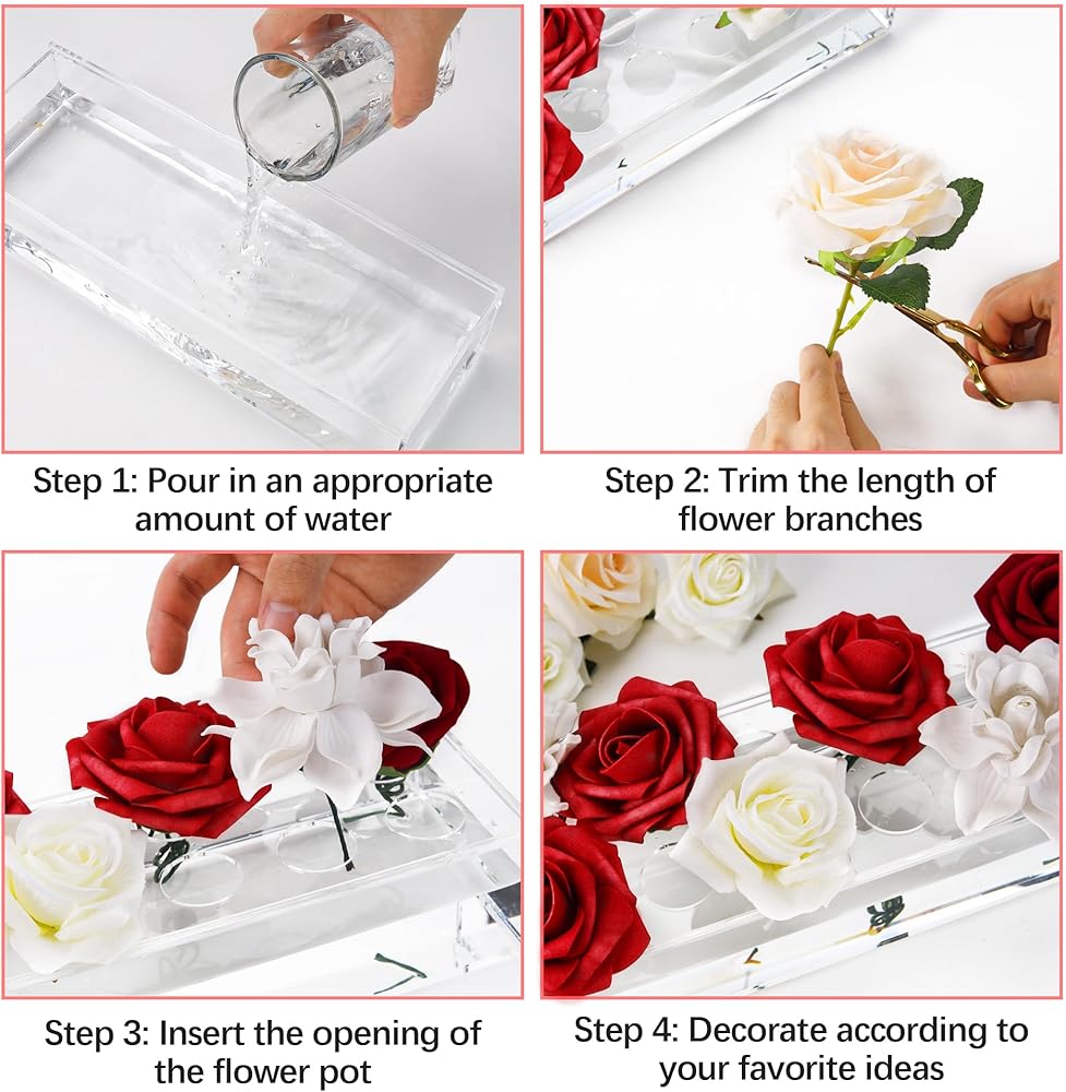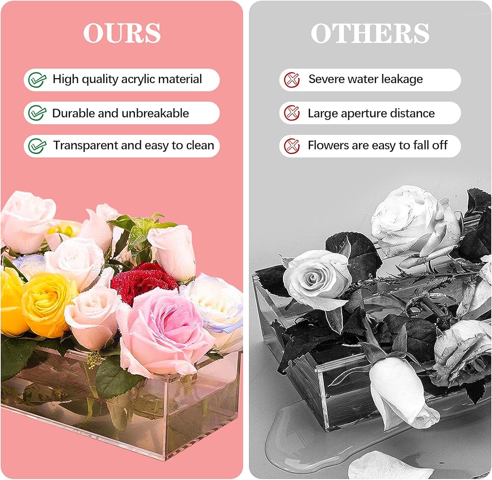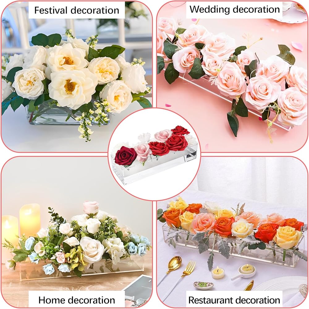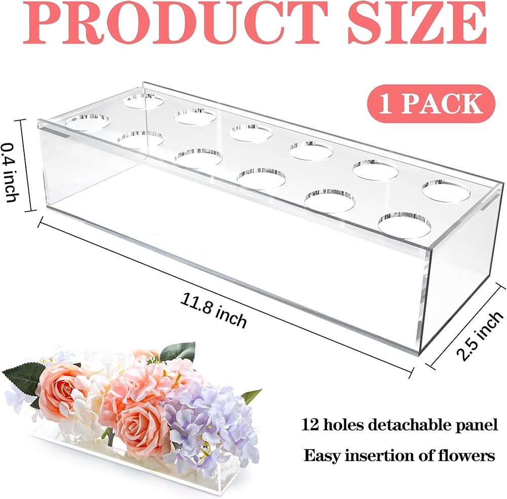 【العبوة】 تشتمل مزهرية الزهور الأكريليك المستطيلة على قاعدة أكريليك ولوحة غطاء أكريليك ذات 12 فتحة (باستثناء الزهور).