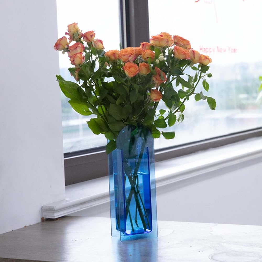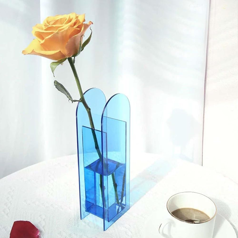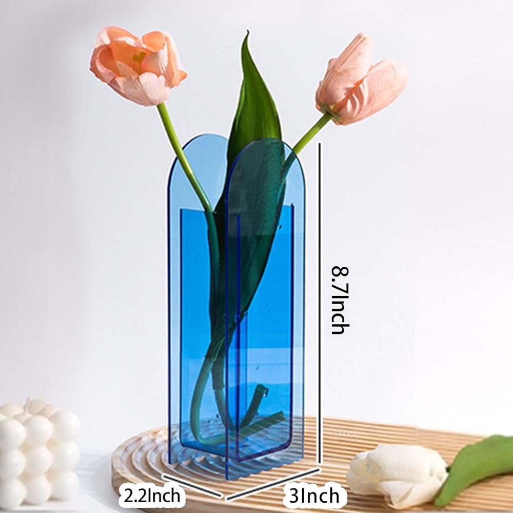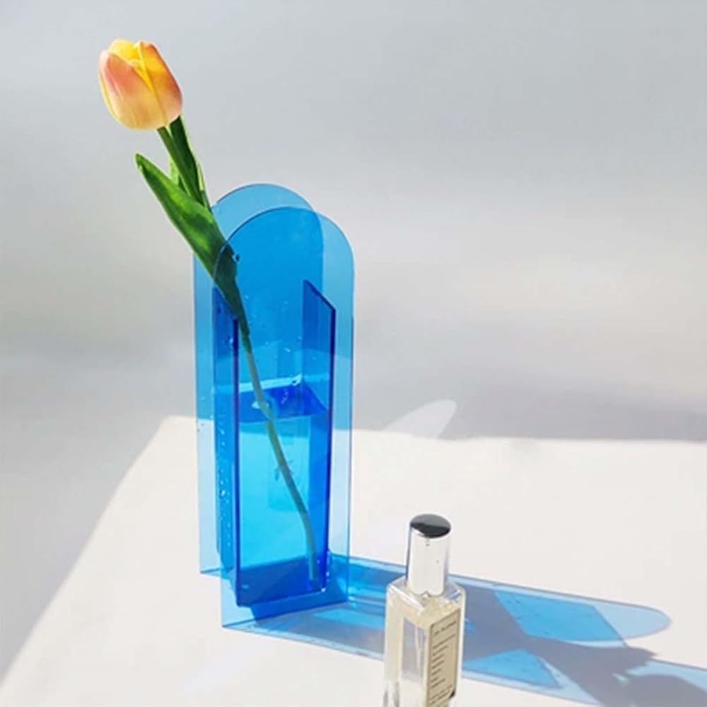 متعددة الوظائف: هذه المزهرية الأكريليكية المصممة بشكل فريد مثالية للزهور الطازجة والزهور المجففة والنباتات الاصطناعية، ويمكن استخدامها أيضًا كحاوية رقيقة لفرش المكياج.