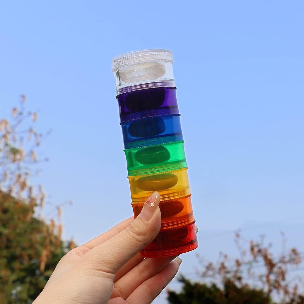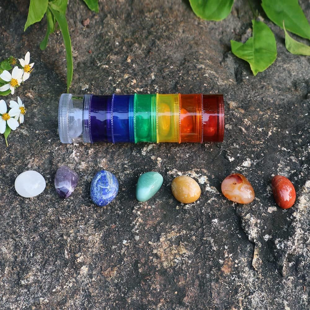 مجموعة كريستالات علاجية من سبعة أحجار شاكرا في علبة حبوب الدواء، 7 أحجار مصقولة، أحجار جيب للتأمل، 7 موازنة طاقة الشاكرا