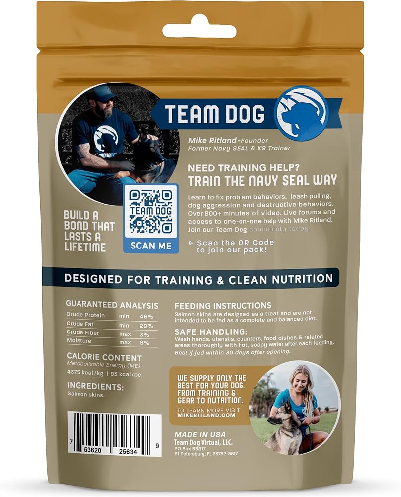 جلود سمك السلمون للكلاب من تيم دوج، مجففة بالتجميد، 4 قطع لكل كيس