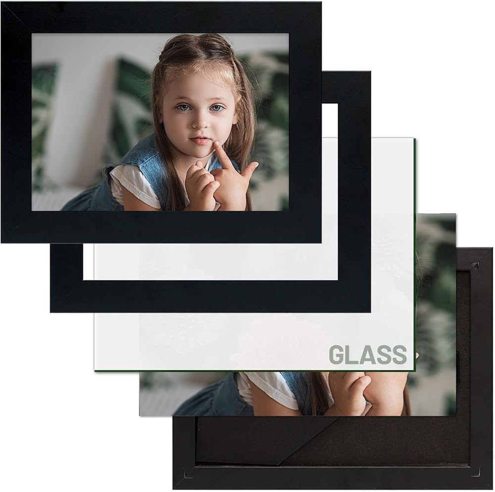 Frametory، مجموعة إطارات صور سوداء مقاس 5 × 7 مكونة من قطعتين، زجاج حقيقي عالي الوضوح، تنسيقات أفقية ورأسية للتركيب على الحائط والطاولة، العائلة والأصدقاء، هدية عيد الأم