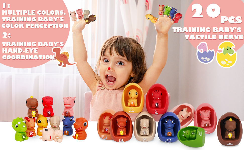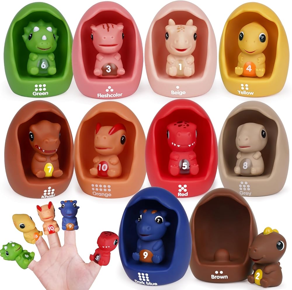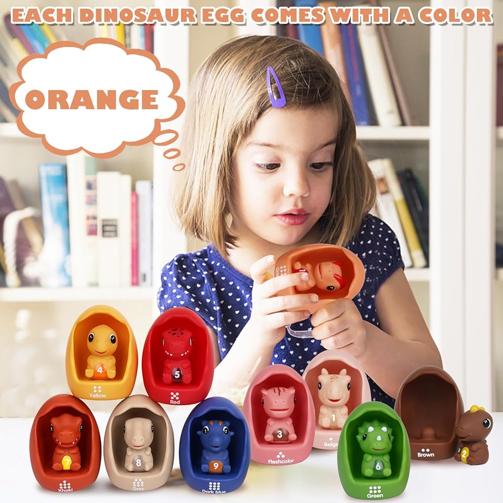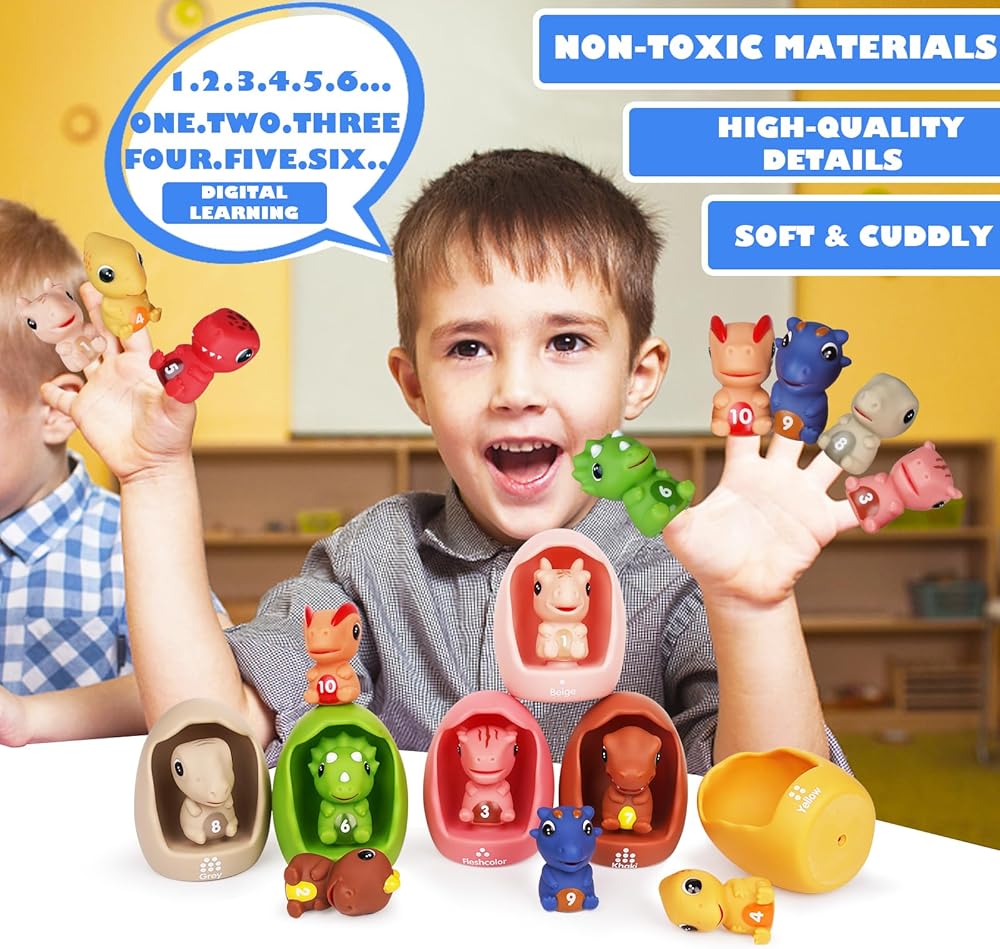 التعلم من خلال اللعب: اغمر طفلك في عالم التعليم التفاعلي مع مجموعة ألعاب الديناصورات لمرحلة ما قبل المدرسة. كشف النقاب عن الأرقام من 1 إلى 10 من خلال التجارب اللمسية والبصرية. تتماشى النقاط الموجودة على بيض الديناصورات مع الأرقام، مما يتيح ألعابًا جذابة تشمل العد والفرز والمطابقة وتنسيق الألوان. تتطور هذه الكنوز التعليمية المتنوعة مع طفلك الدارج، وتنمي إمكاناته.
