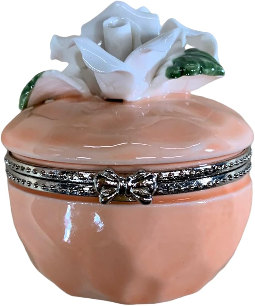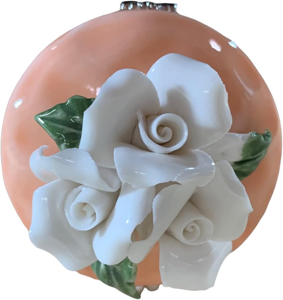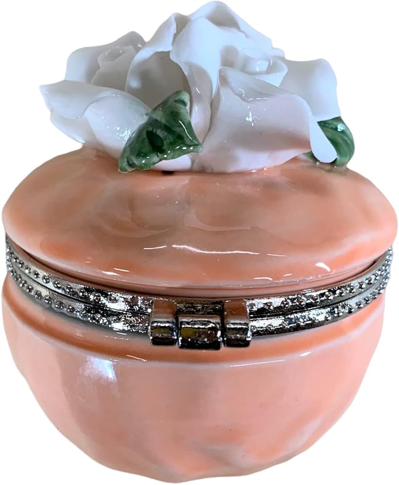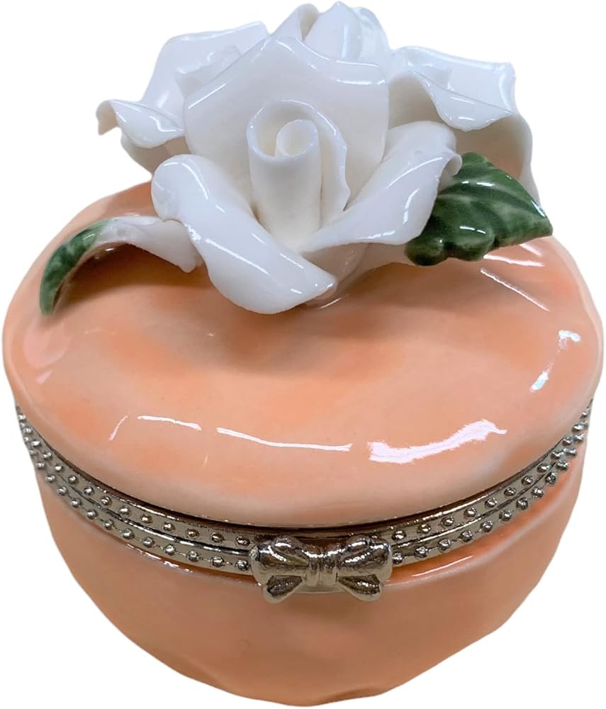 الفنون القيمة صندوق حلي من البورسلين بتصميم ورود بيضاء، قطر 2 انش (خوخي)