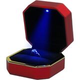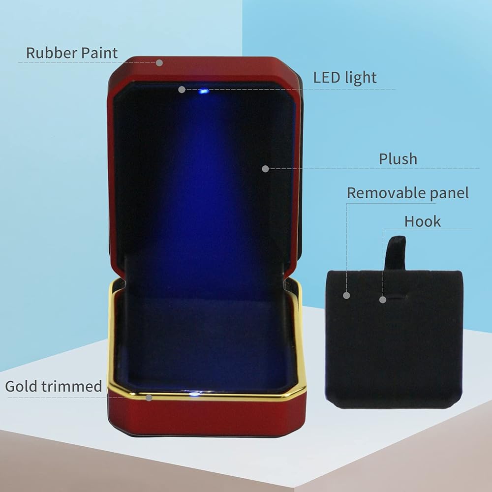 تصميم بإضاءة LED: على عكس المنتجات الأخرى، ستحصل على صندوق حامل حلقي مع ضوء أزرق صغير سيضيء تلقائيًا عند فتح الصندوق. يسلط ضوء LED الموجود بالداخل الضوء على بريق الخاتم وتفاصيله، مما يجعل المجوهرات تتألق بأجمل طريقة.
