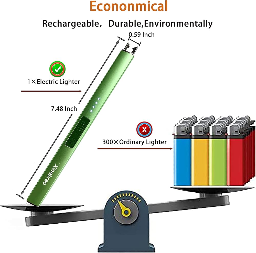 • 【ولاعة شموع اقتصادية وبيئية】ولاعة كهربائية واحدة، وهي أكثر اقتصادية وبيئية، تساوي 300 ولاعة تقليدية.