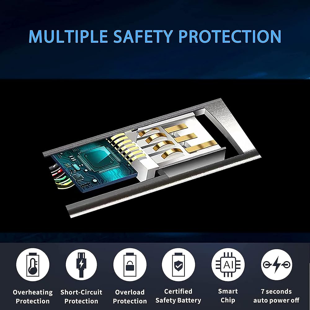 • [تصميم السلامة] - اجتازت ولاعتنا اختبار CE وUL. يجب عليك تحريك الغطاء لأعلى أولاً، ثم الضغط على مفتاح الإشعال للعمل. سوف تتوقف شرارة الإشعال تلقائيًا بعد 7 ثوانٍ لكل إشعال من أجل الأمان. سيتم إعادة إشعال شرارة الإشعال عند إعادة التشغيل.
