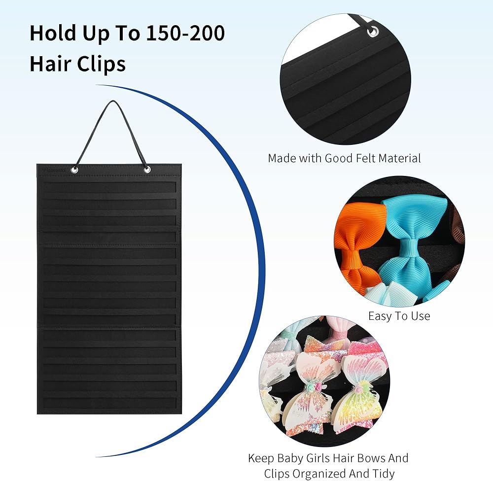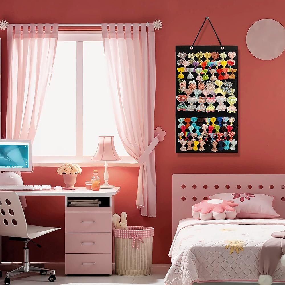 【سهل التجميع والتنظيم】: يتيح لك الهيكل المخصص الفريد لمنظم مشبك القوس للفتيات الصغيرات تجميع وتعليق واختيار إكسسوارات شعر طفلك بسهولة وراحة. ما عليك سوى قص دبابيس الشعر على الأشرطة الموجودة في كل صف وتعليقها على الأبواب والجدران والخزائن عند الانتهاء.