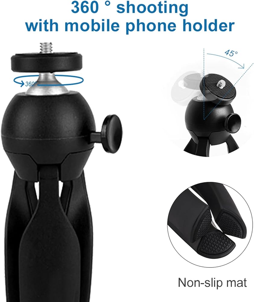 تطبيقات واسعة: تأتي مع رأس كرة دوارة صغيرة توفر مقلاة 360 درجة، وتقفل التصوير بأي زاوية تريدها؛ الأرجل مفتوحة بالكامل بطول 3.3 بوصات/8.5 سم، مما يجعلها مثالية للتصوير الدقيق بزاوية منخفضة