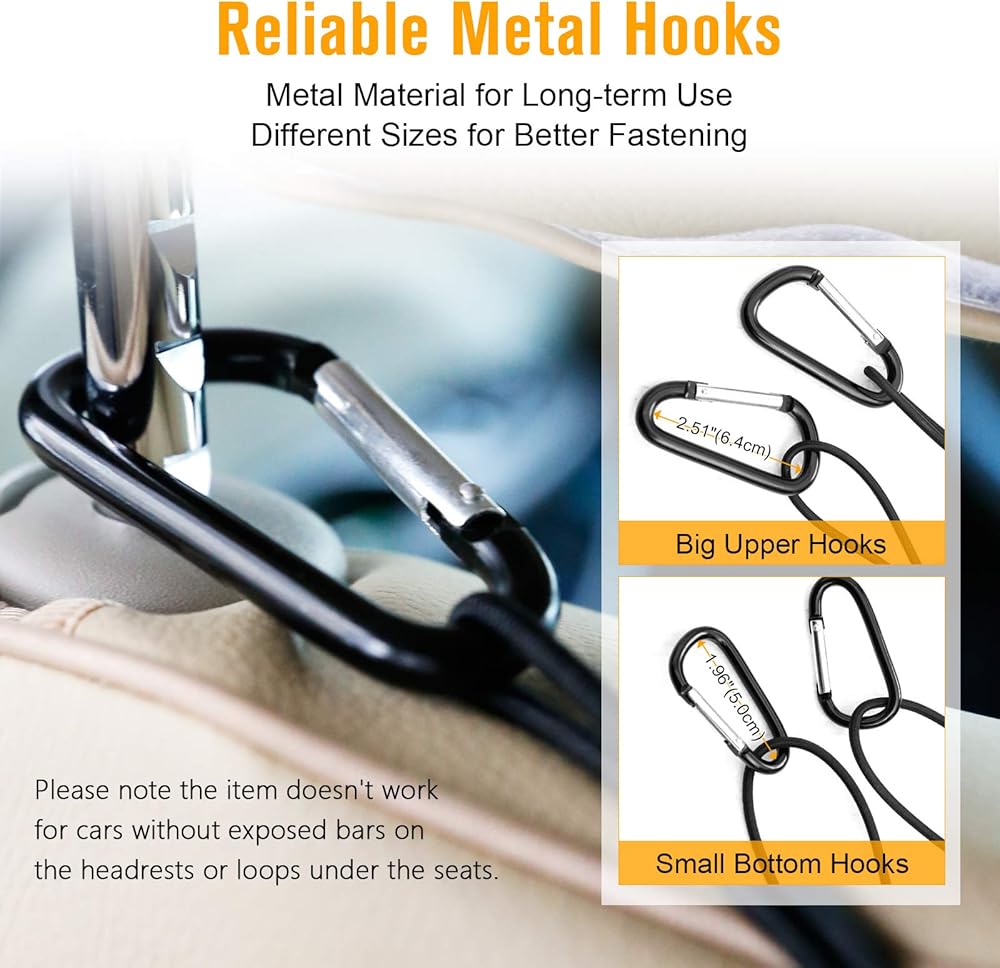 مواد متينة وتصميم عالمي: مصنوعة من أسلاك بوليستر قابلة للتمدد وخطافات معدنية متينة. بالمقارنة مع الحبال القابلة للتمدد والخطاطيف البلاستيكية، فإن حاجز الحيوانات الأليفة هذا أقوى ليوفر استخدامًا طويل الأمد. قمنا بترقية حجم الخطافات لجعلها كبيرة بما يكفي لتناسب معظم القضبان الجانبية والجزء السفلي من مقاعد السيارة