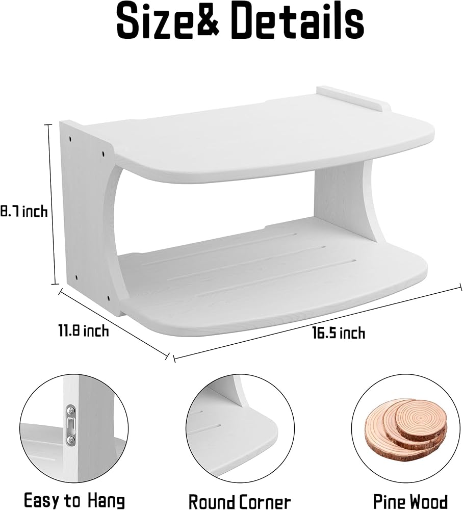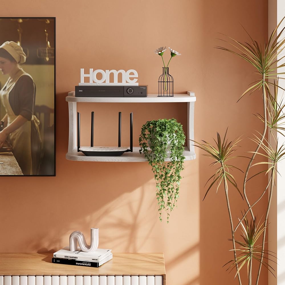 【تصميم فريد】يتميز رف اللوح الأمامي بتصميم تبريد وتهوية، وقد صممنا فتحات تهوية في الأسفل لمساعدة المقبس والراوتر على تبديد الحرارة، مما يمكن أن يطيل عمر خدمة الجهاز. تم تصميم الزوايا المنحنية لتكون أكثر استدارة لتجنب الصدمات من الأطفال في المنزل.
