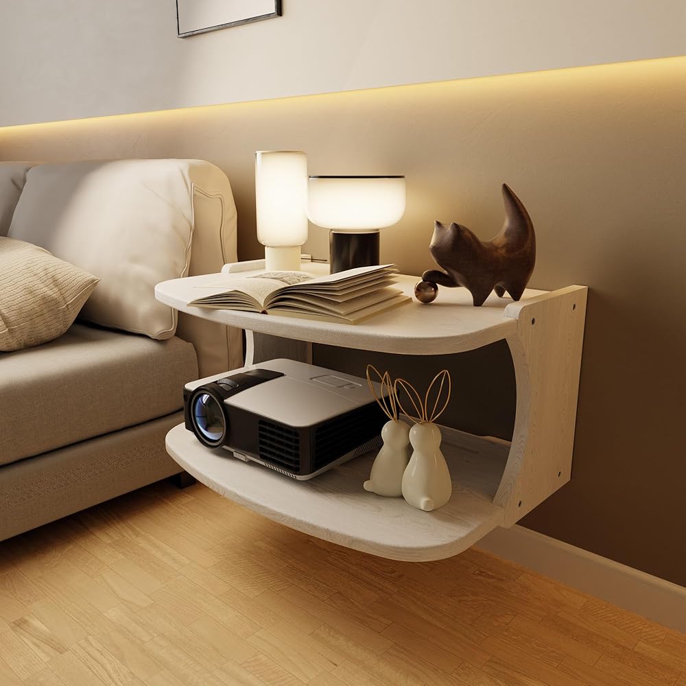 رف جهاز عرض عائم يثبت على الحائط من لوبنيكا، رف خشبي بطبقتين لراوتر واي فاي عائم لصناديق الكيبلات ومشغلات دي في دي ووحدات تحكم الالعاب، منضدة عائمة لغرفة النوم وغرفة المعيشة