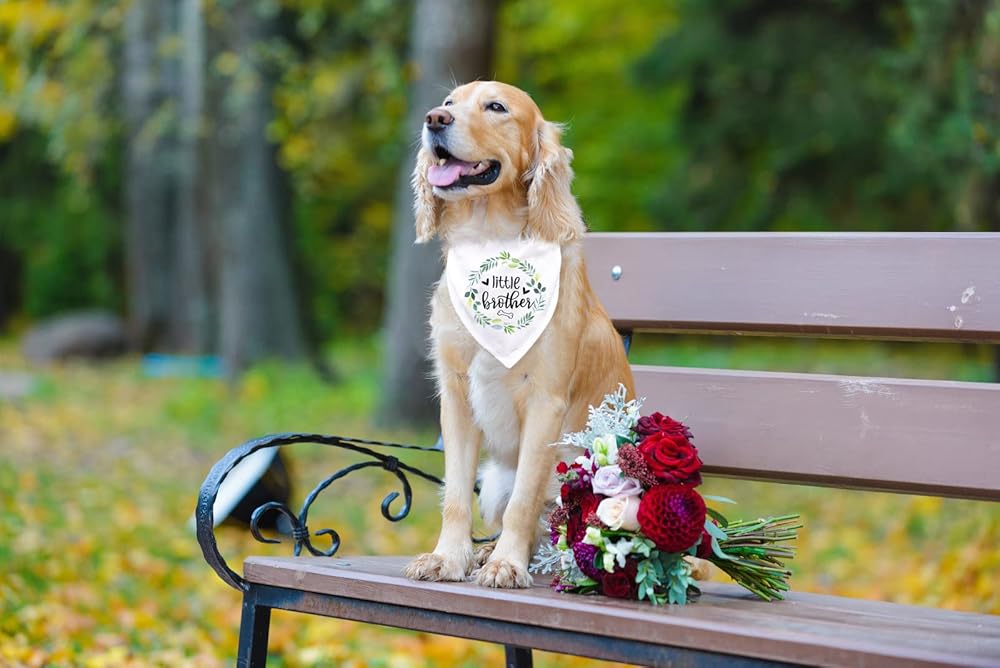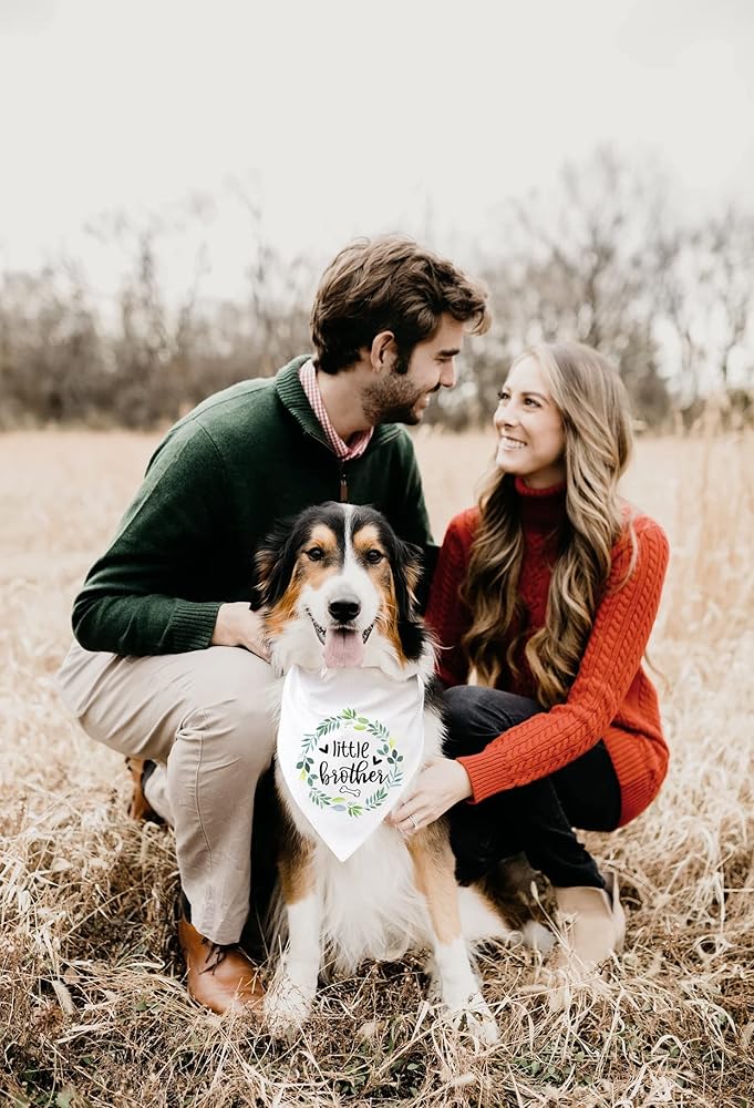 ptzizi مضحك الأخ الصغير الأبيض اكليلا من القطن مثلث كلب باندانا كلب المرايل وشاح، صغير متوسط ​​كبير صبي كلب عيد ميلاد الدعائم الطرف لمحبي الكلاب الحيوانات الأليفة هدية