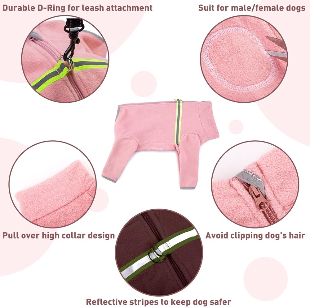 معطف شتوي للكلاب من BRKURLEG بأربعة أرجل وسترة شتوية عاكسة للكلاب معاطف للطقس البارد، معطف دافئ للكلاب بأكمام طويلة للكلاب الصغيرة والمتوسطة وردي M