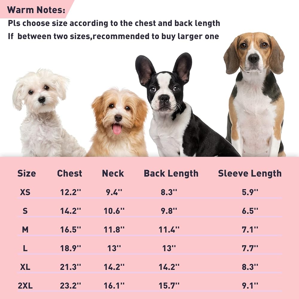 • ♥ ♥ 【6 مقاسات متاحة】6 مقاسات تناسب تقريبًا الكلاب والقطط الصغيرة والمتوسطة، مثل تيدي وتشيهواهوا وبيجل وبودل وبولدوج الفرنسي وشنوزر وبيتبول، إلخ. حافظ على دفء أصدقائك ذوي الفراء في الشتاء البارد والخريف. من فضلك تأكد من قياس كلبك بعناية قبل اختيار المقاس، إذا كان مقاسك بين مقاسين، فاختر المقاس الكبير.