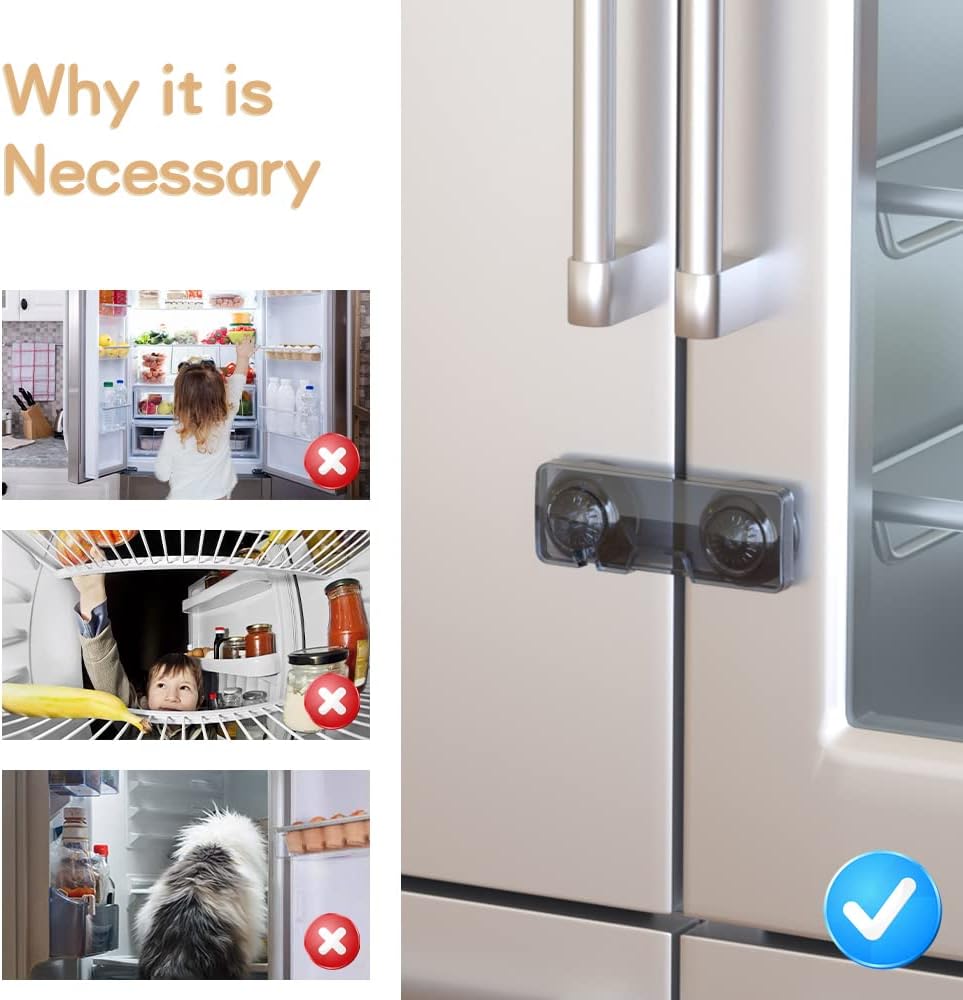 ☀ لماذا هو ضروري --- امنع الأطفال من اللعب بباب الثلاجة؛ منع الأطفال من فتح باب الثلاجة وتناول الأشياء المحرمة. ليس فقط للأطفال الرضع ولكن أيضًا للحيوانات الأليفة. يمكن أن يساعد أيضًا في حمل الثلاجة التي لا يعمل ختمها بشكل صحيح.