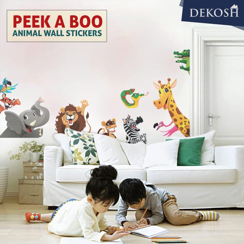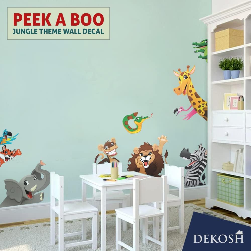 ملصقات حائط على شكل حيوانات من DEKOSH للأطفال قابلة للتقشير واللصق | ملصقات حائط لغرف الأطفال ذات طابع الغابة الخيالية لغرفة اللعب | تحتوي ملصقات الحائط المزخرفة للأطفال على ملصقات ملونة للزرافة والأسد والنمر