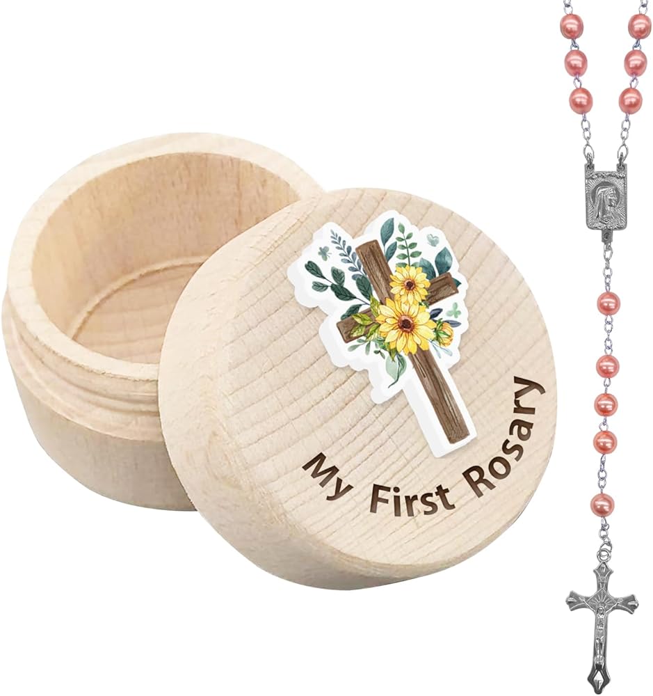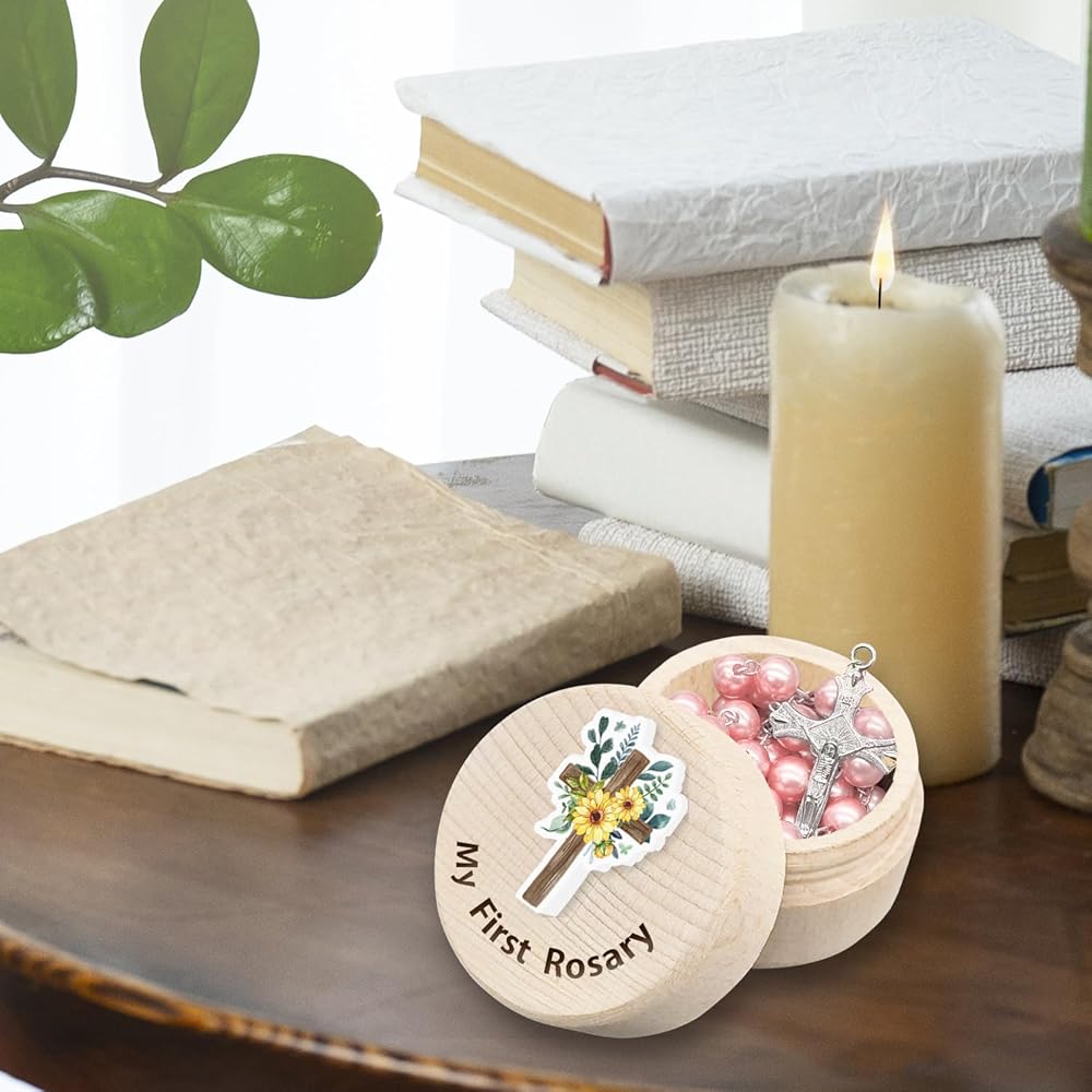 • 【Exquisite Baby Baptism Keepsake】My First communion gifts is exquisitely designed, and there is a three-dimensional colorful cross on the lid, which is beautiful and lovely. The engraved 'My First Rosary' text on the wooden box lid. And it is equipped with a blue rosary, which can be put into the christening commemorative wooden box.