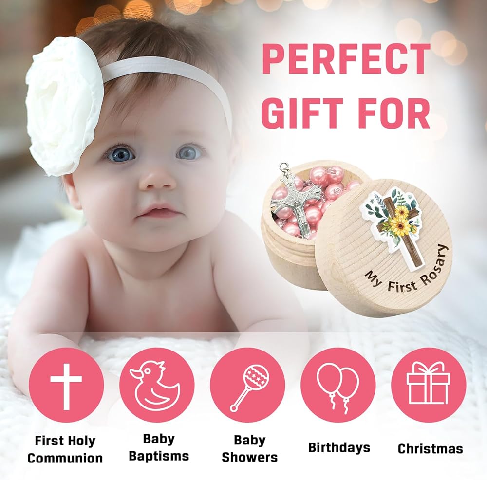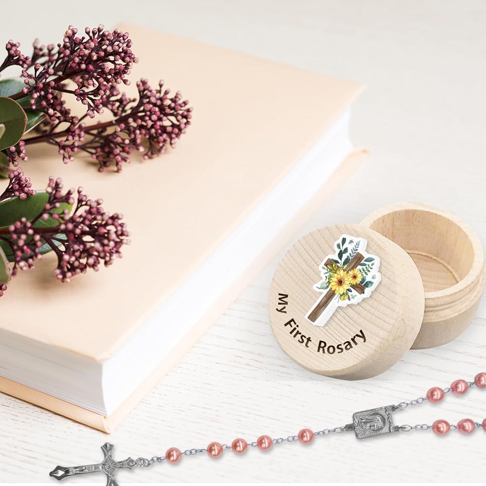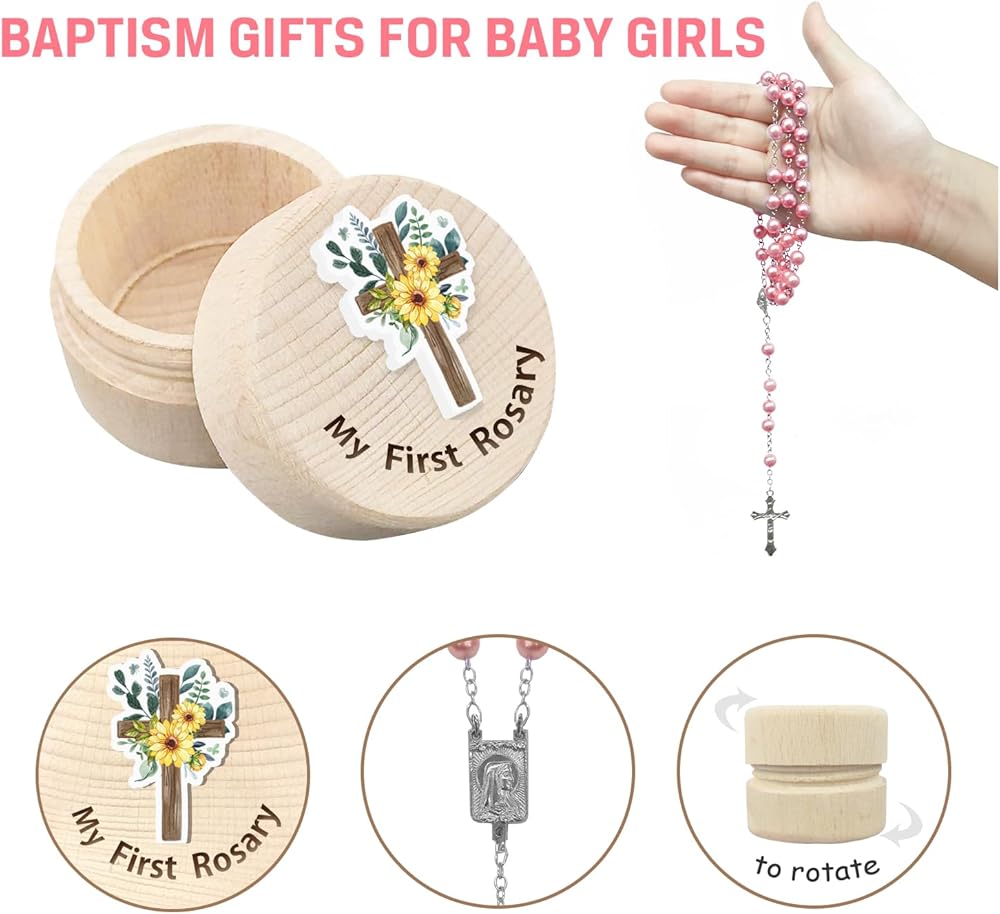 الفتيات المقدسة أول هدية الوردية بالتواصل، بلدي أول مسبحة وصندوق تذكار للأطفال، هدية الوردية الكاثوليكية لفتاة، الهدايا المسيحية هدايا المعمودية الكاثوليكية للطفل عيد ميلاد استحمام الطفل