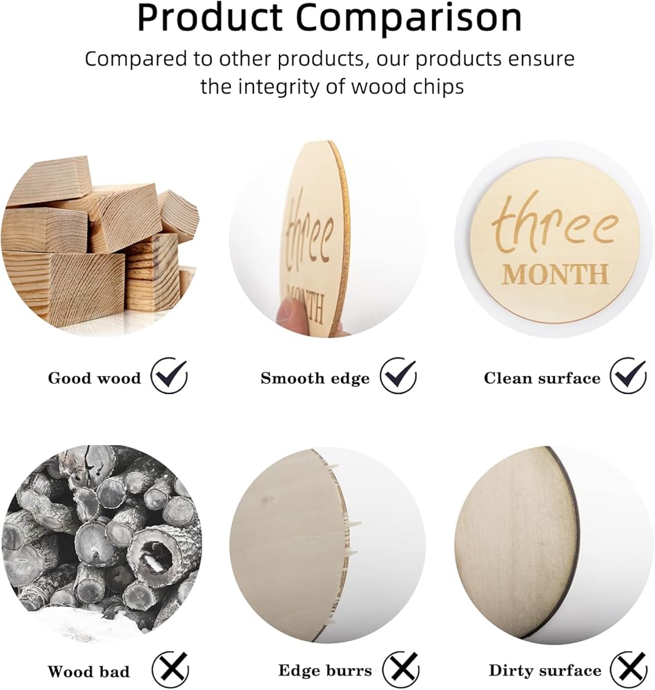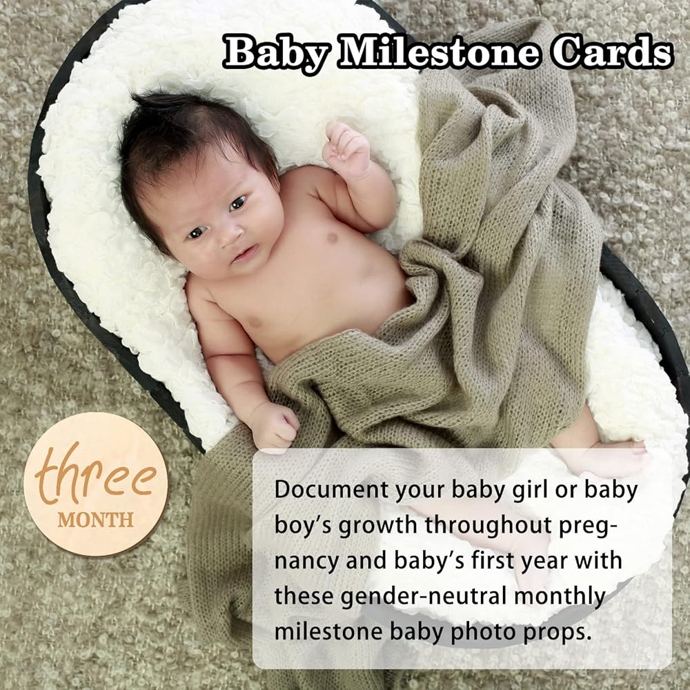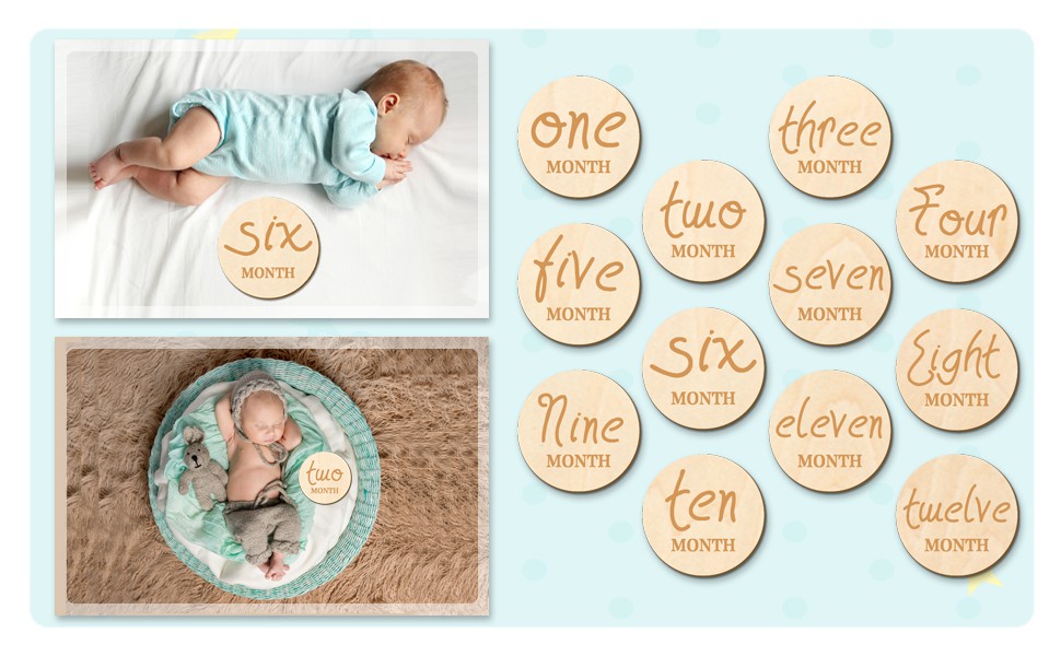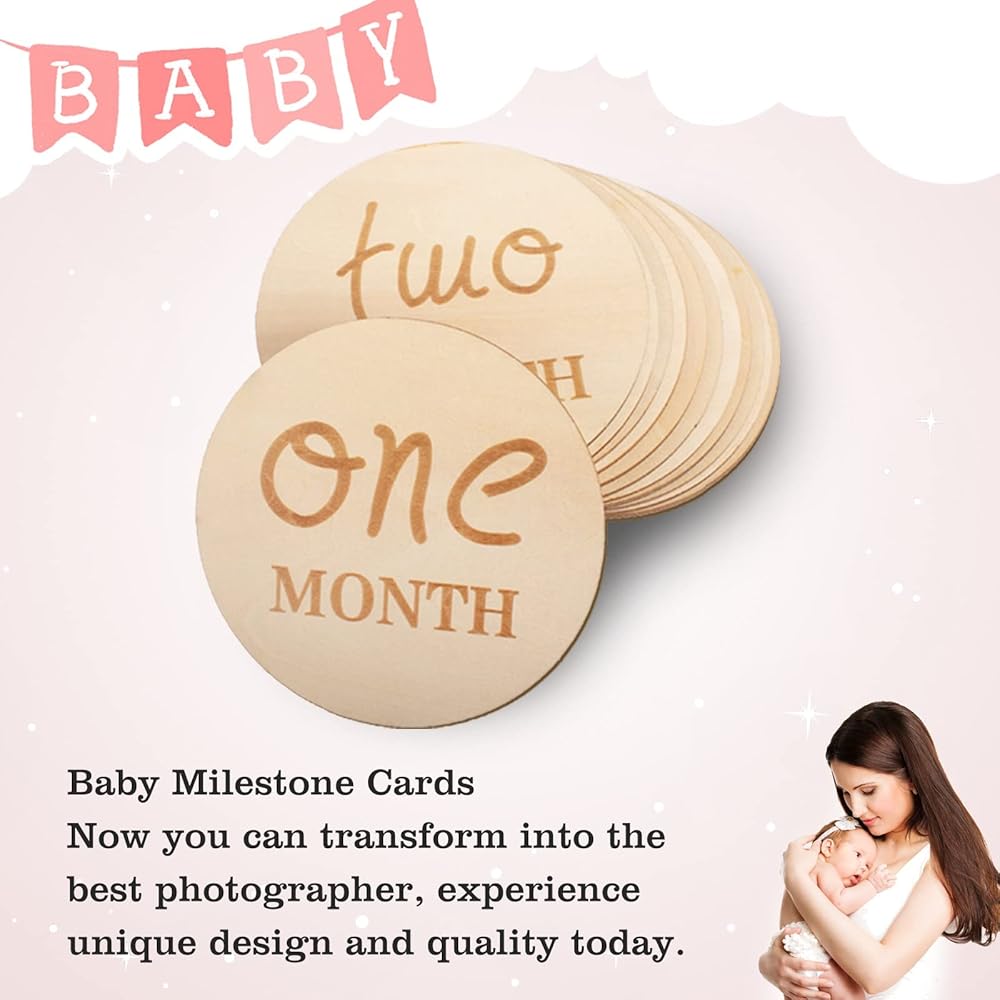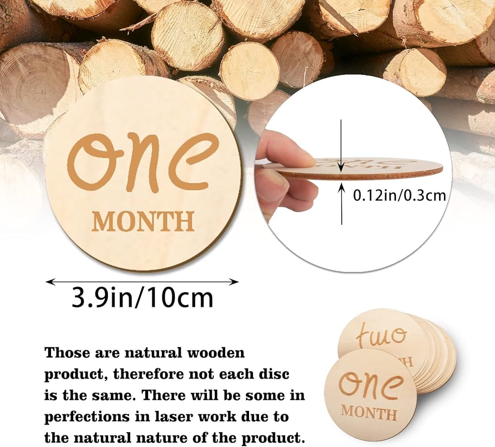 12 قطعة من بطاقات الصور الشهرية للاطفال، مجموعة اقراص خشبية من 1-12 شهر، لافتة اعلان الميلاد لدعائم صور السنة الاولى، قطر 4 انش