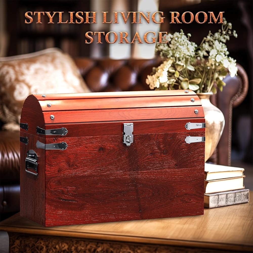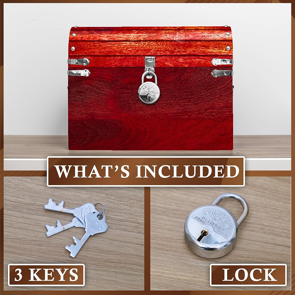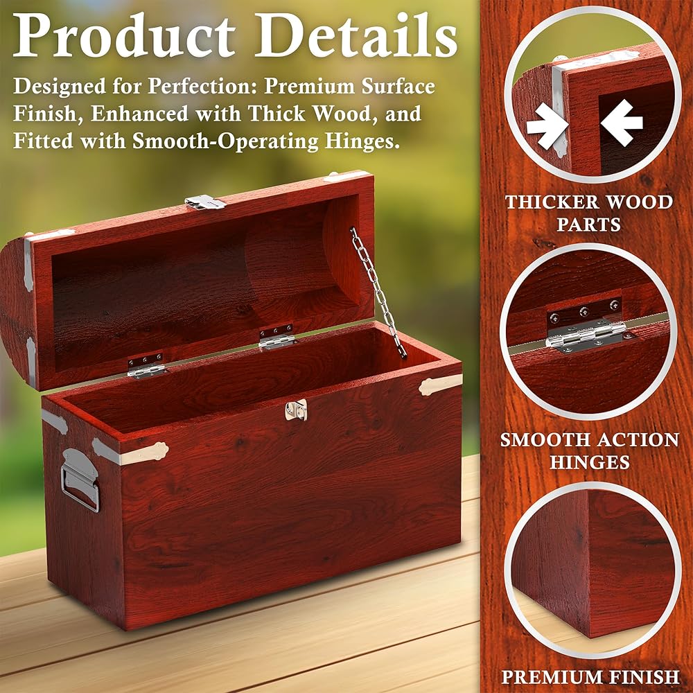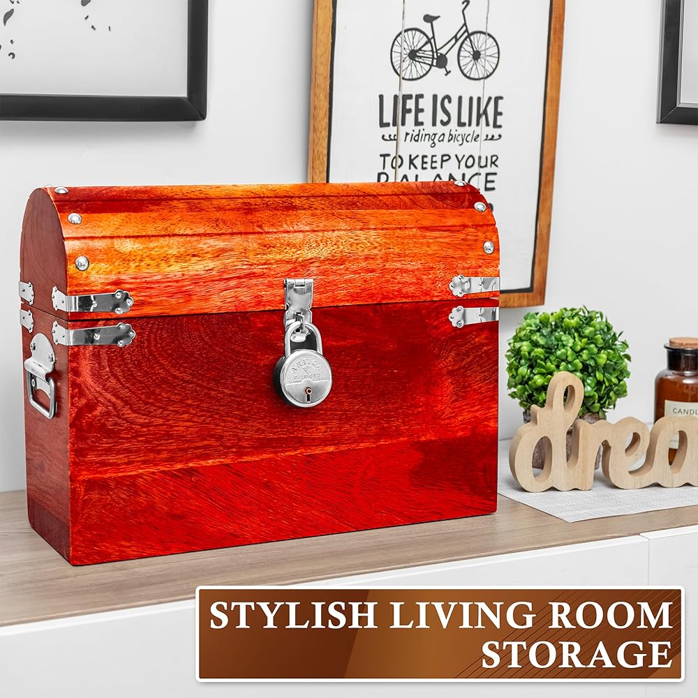 مثالي كصندوق كنز قابل للقفل، أو دعامة لصدر القراصنة لديكور الهالوين، أو صندوق بخار صغير عتيق للمجوهرات والتذكارات العائلية، أو صندوق هدايا تذكارية عتيق لتزيين محيطك - مهما كان استخدامه، فإن صندوقنا الخشبي ذو الغطاء سيكون مفيدًا بالفعل