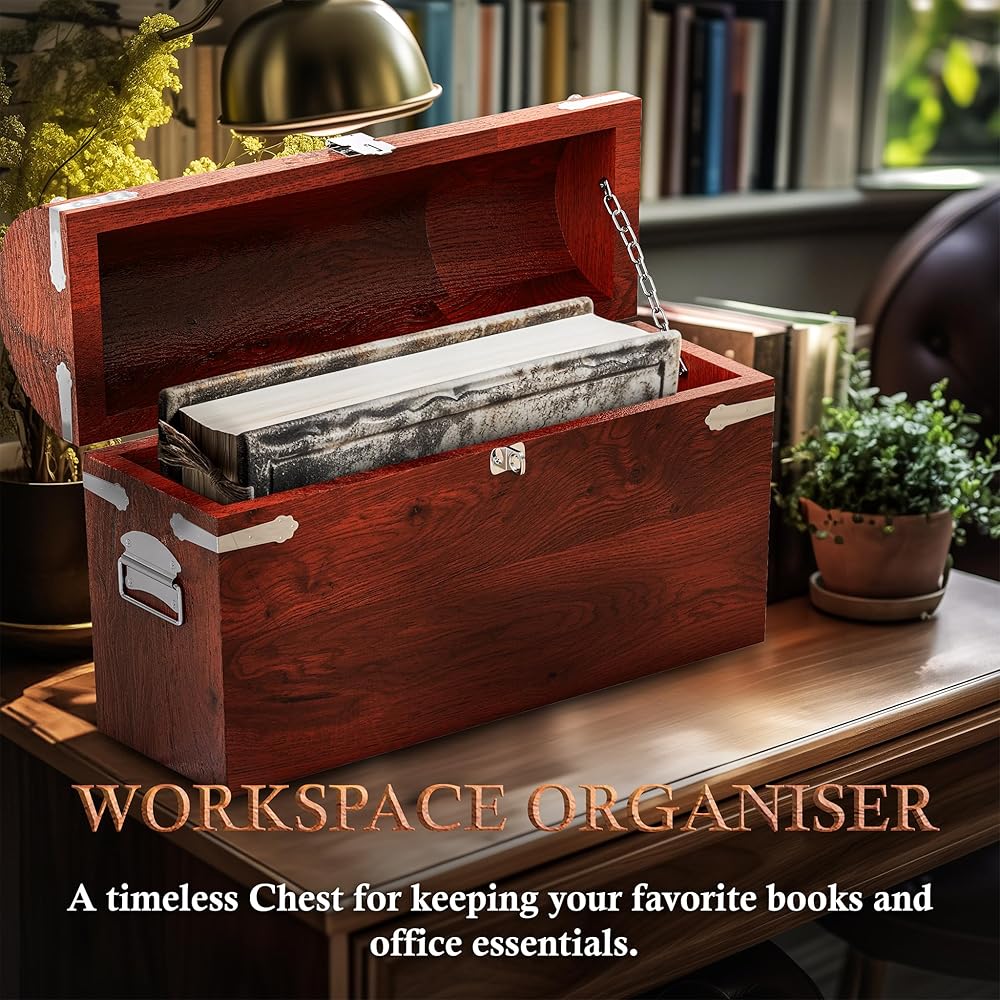 قطعة محورية في أي مكان، يأتي صندوق التخزين الخشبي العتيق هذا بحجم كبير وجاهز للتخزين يبلغ 40.64 سم عرضًا × 30.48 سم عمقًا × 15.24 سم ارتفاعًا للحفاظ على جميع كنوزك ومقتنياتك القيمة بأمان وأمان.