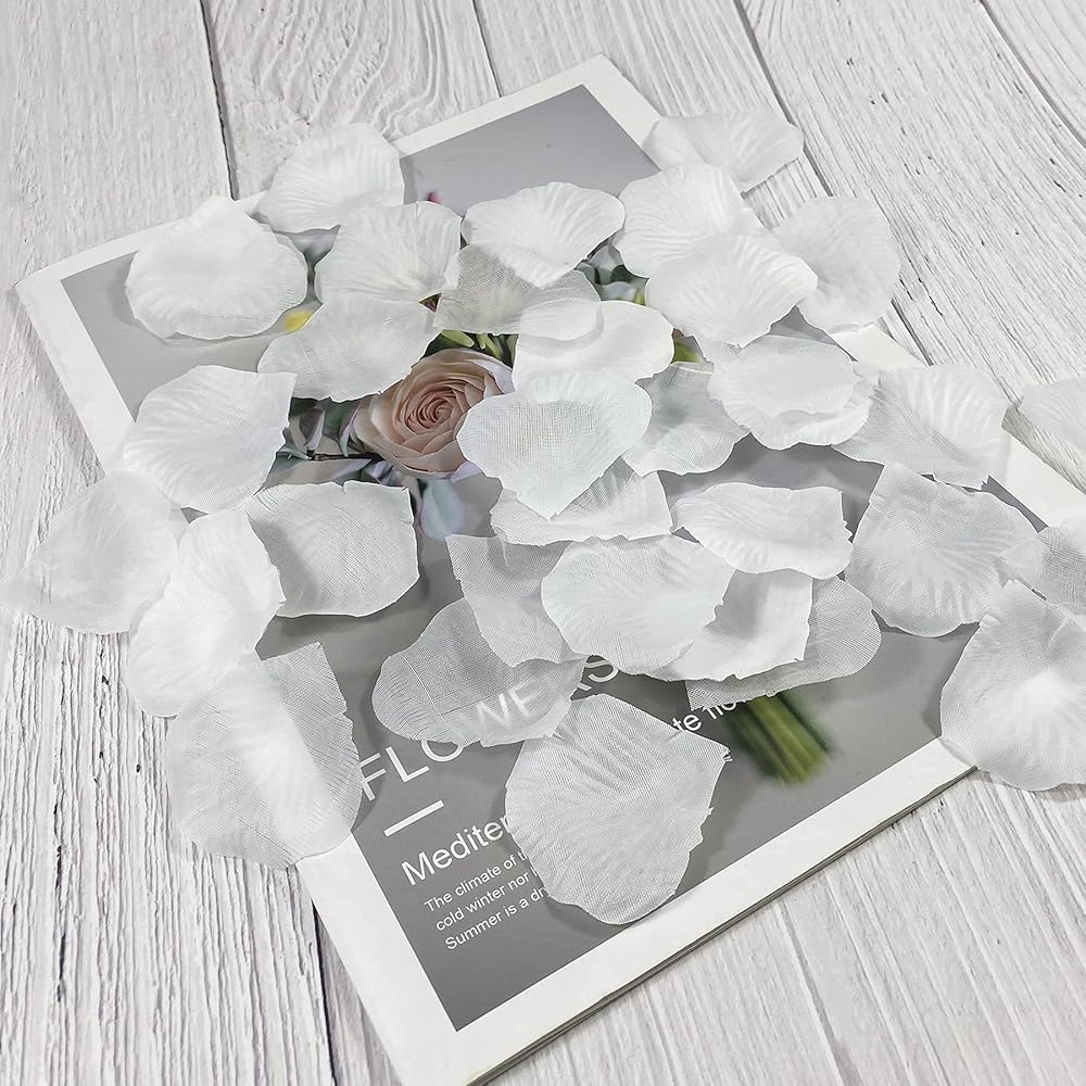 3000 قطعة من بتلات الورد الحريري الأبيض لتزيين حفلات الزفاف وبتلات الزهور الصناعية لعيد الحب، وليلة رومانسية، وطاولة الطعام، وأعياد الميلاد، والمناظر الطبيعية مع بتلات الورد