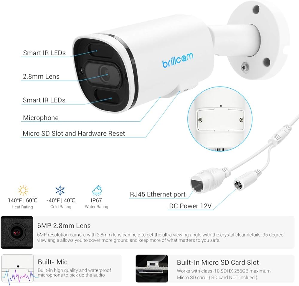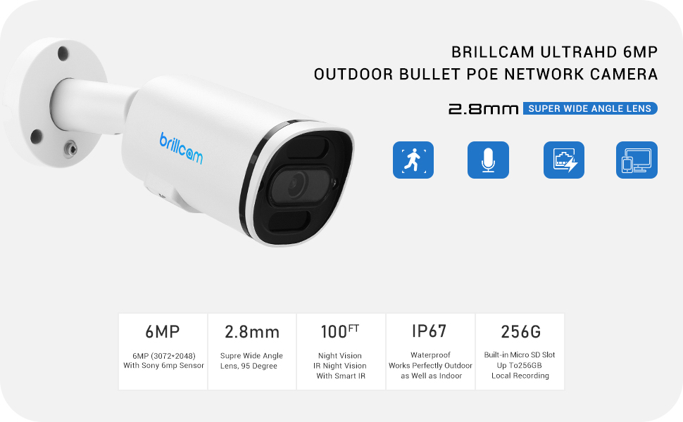 IP67 مقاوم للماء ومصدر طاقة PoE: يمكن لكاميرا poe المصنوعة من مواد معدنية بالكامل أن تتحمل المطر القاسي والرياح والثلج وغيرها من الأحوال الجوية التي لا تزال تعمل بشكل طبيعي. تستخدم الكاميرا مصدر طاقة PoE بدون كابل طاقة، مما يمكن أن يمنح الكاميرا الطاقة ونقل البيانات في نفس الوقت.