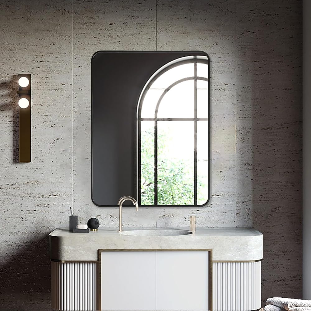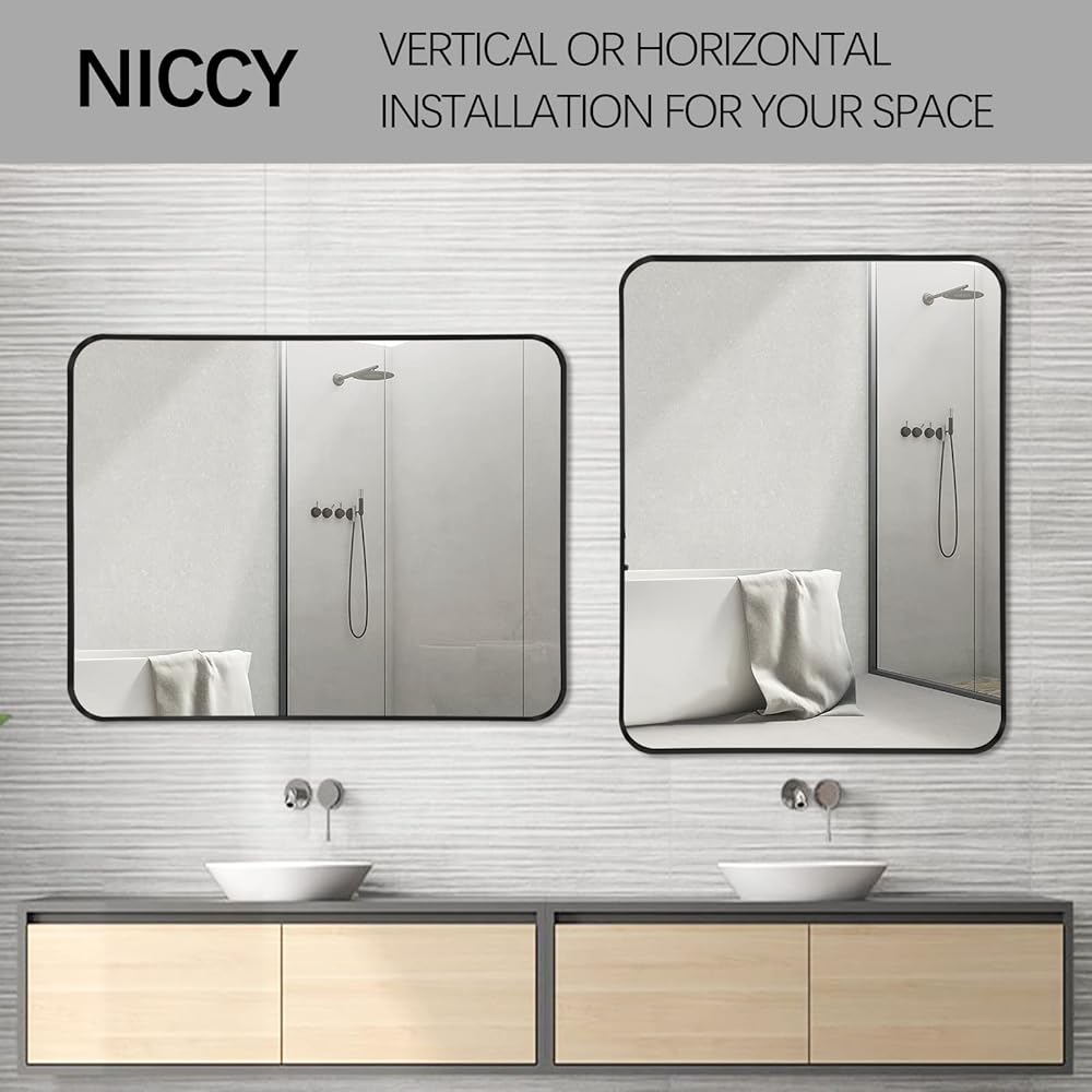 مرآة حائط Niccy مقاس 30 × 22 بوصة للحمام، مرآة زينة مثبتة على الحائط بإطار معدني كبير مستطيل الشكل، مرآة مزرعة مزخرفة عالية الدقة مقاومة للكسر، يتم تعليقها أفقيًا أو رأسيًا، ذهبي