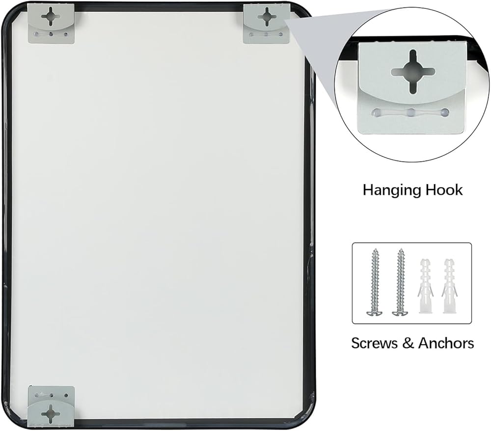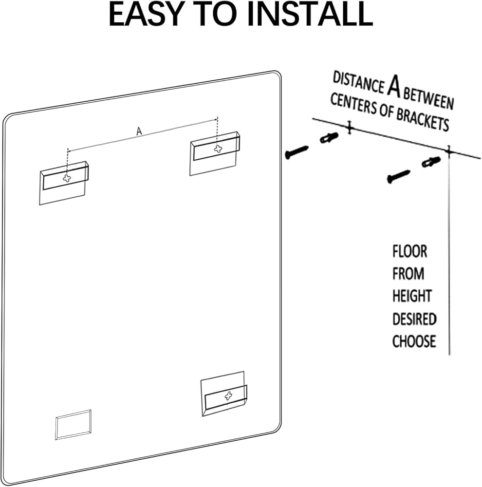 • التثبيت الرأسي أو الأفقي: يمكن تعليق المرآة عموديًا أو أفقيًا. بالإضافة إلى ذلك، يمكن وضع المرآة على الحائط كديكور. يأتي مع مجموعتين من المراسي والأظافر. يرجى قراءة الدليل لاختيار فتحتين صحيحتين قبل ثقب الثقوب.