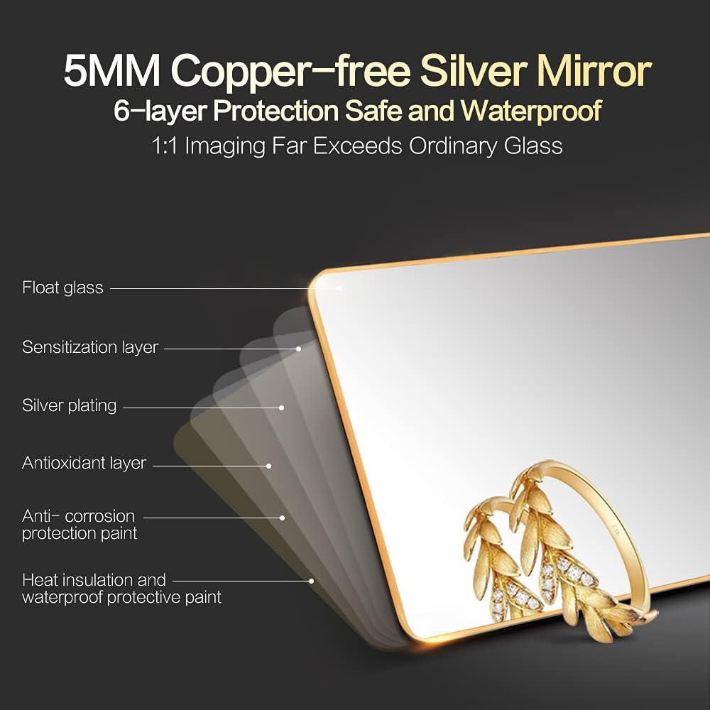 • مرآة عالية الدقة ومقاومة للكسر: تستخدم المرآة تقنية تعويم من 6 طبقات لضمان إعادة إنتاج الصورة الحقيقية بنسبة 1:1. توفر الطبقة المطلية بالفضة الممتازة انعكاسًا عالي الدقة دون أي تشويه على المرآة. والفيلم المقاوم للكسر هو الطبقة المهمة للحفاظ على سلامة الأشخاص في حالة كسر المرآة عن طريق الخطأ.