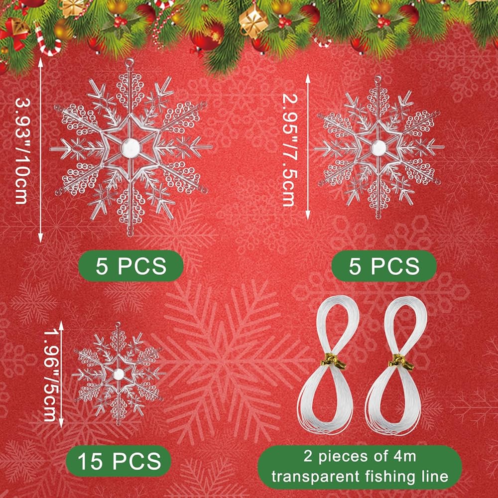 -Snowflakes ornaments available in three sizes to meet your different needs, perfect choice for winter Christmas decoration