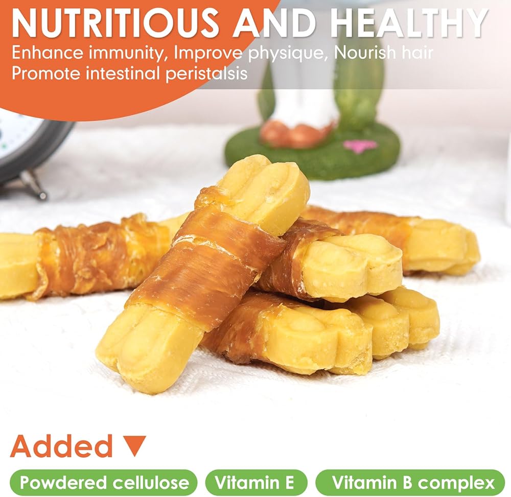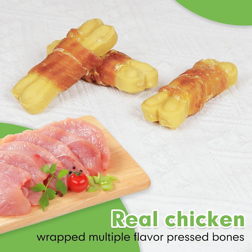 [مغذية وصحية] مصنوعة من دجاج حقيقي ملفوف حول عظمة ناعمة. فيتامين E الإضافي وفيتامين ب المركب. اجعل كلبك أكثر صحة.