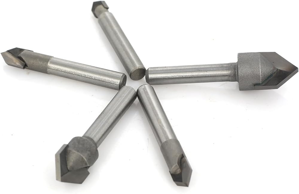 ☺ 5 قطع من رؤوس الحفر 90 درجة على شكل حرف V من اكيلين، ساق 1/4 انش، قطر القطع 1/4 انش، 5/16 انش، 3/8 انش، 1/2 انش، 5/8 انش؛ طول القطع المقابل 3/8 انش، 3/8 انش، 7/40.6 سم، 1/2 انش 5/8 انش. التطبيق: النقش، صناعة اللافتات، العروق والتفاصيل الزخرفية
