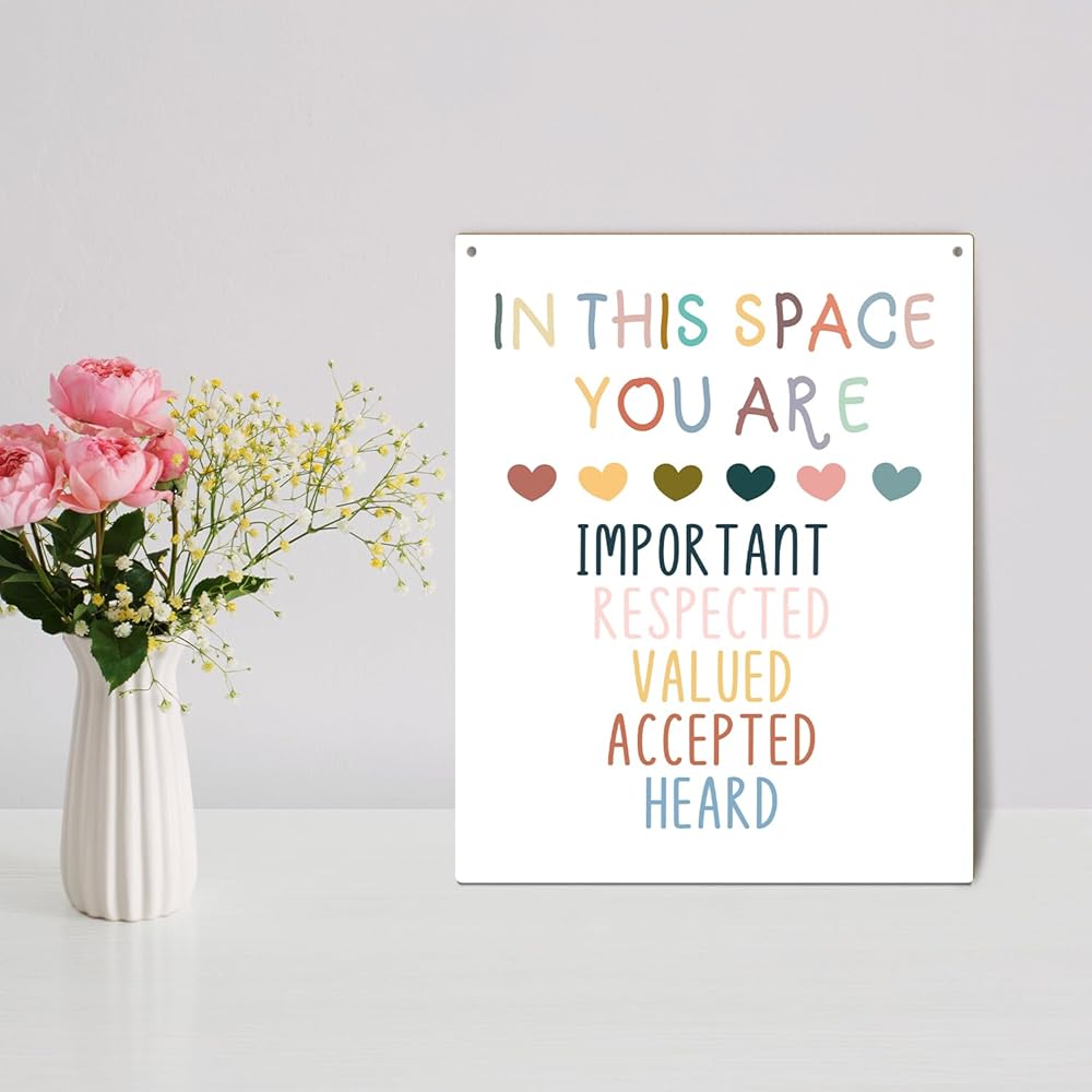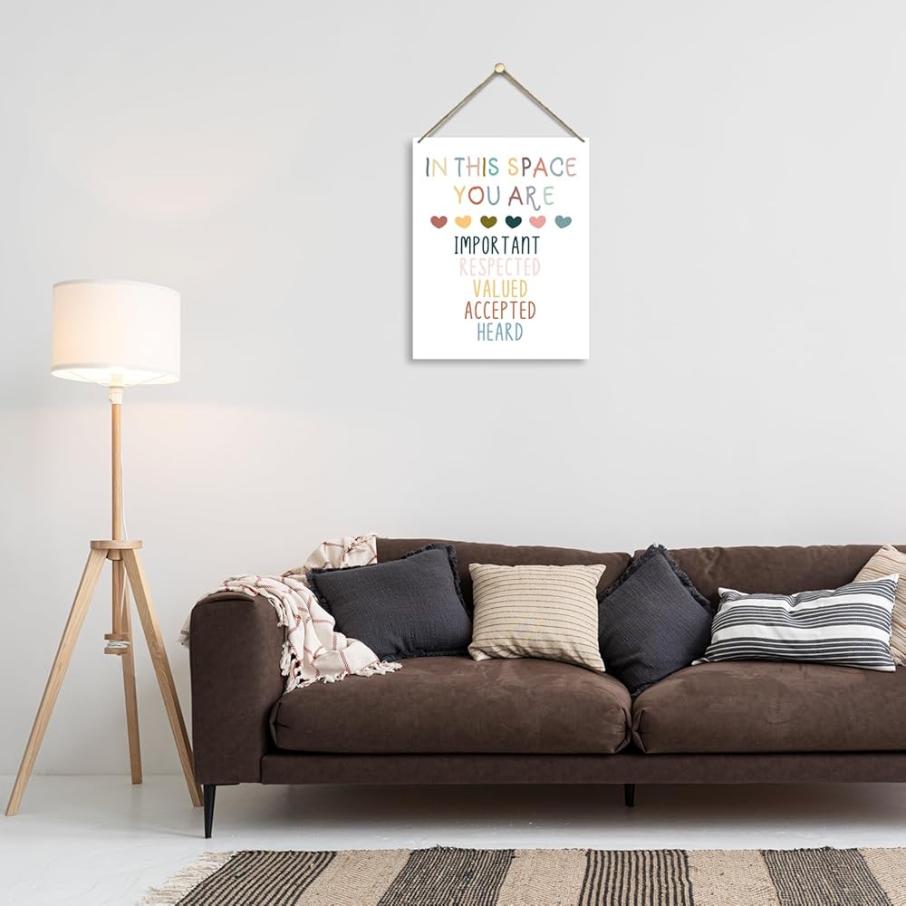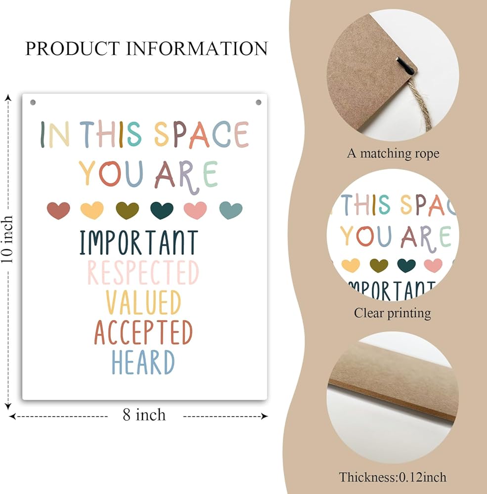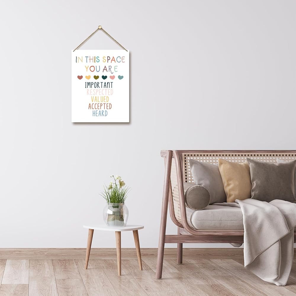 لوحة خشبية تحفيزية مقاس 8 × 10 بوصة معلقة على الحائط، في هذا الفضاء أنت، علامة خشبية ملونة للصحة العقلية هدية فنية لتزيين الجدران في الفصول الدراسية والمكتب والدراسة في غرفة النوم - 06